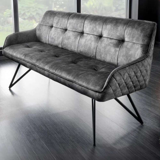Elegante Sitzbank HORA ca.160cm Samt grau Retrostil Armlehnen