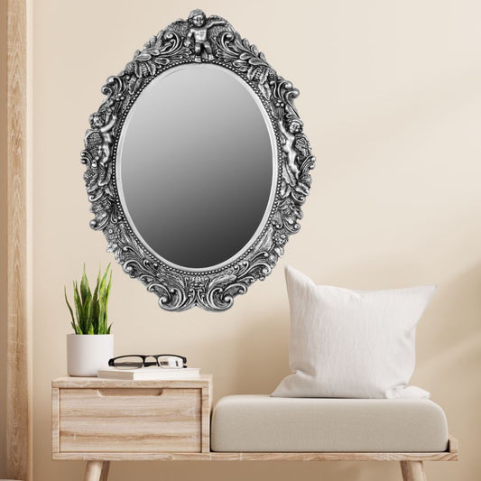 Ovaler Barock Spiegel MALAI silber 50x43cm Engel Vintagelook