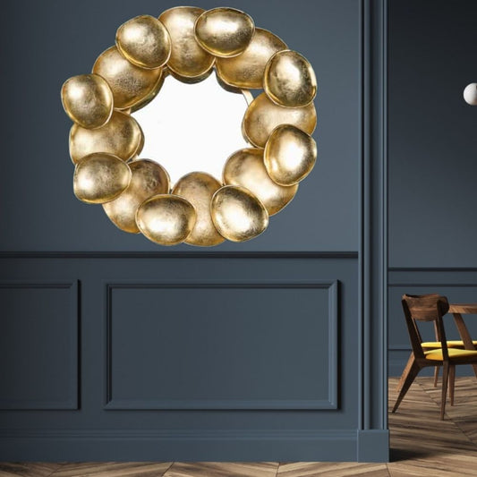 Design Wandspiegel BARATO 55cm rund gold Metall Handarbeit