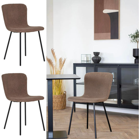 2er Set - Retro Stuhl HANNA braun Bouclé-Stoff schwarze Beine