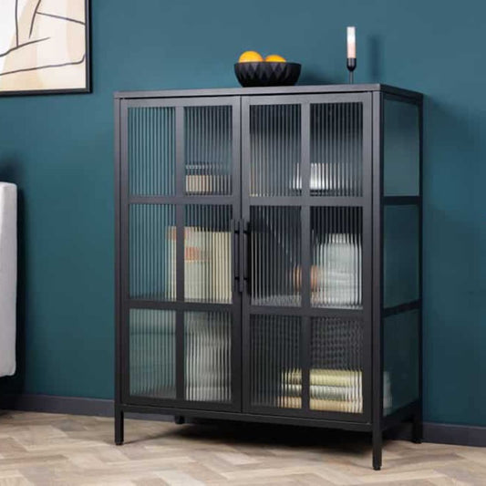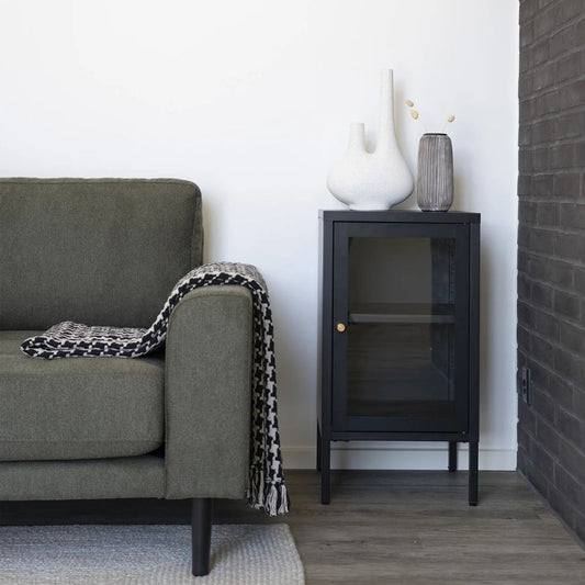 Moderne Kommode DAILY 70cm schwarz Glastür Metall