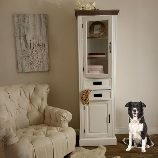 Edler Landhaus Vitrinen-Schrank CHALET 180cm weiss-braun