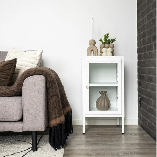 Moderne Kommode DAILY 70cm weiss Glastür Metall