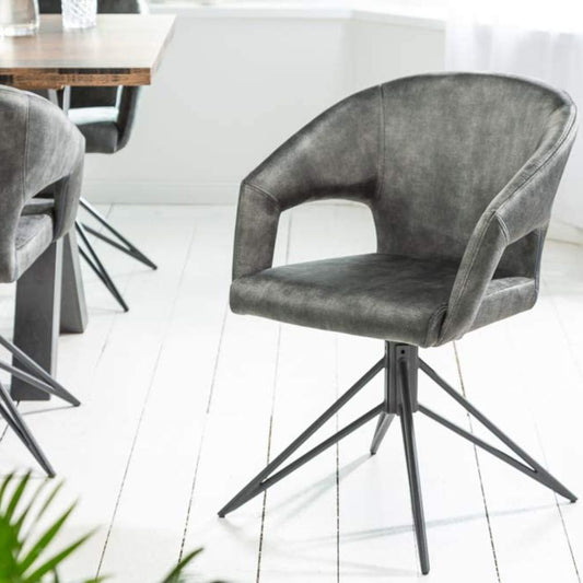 Eleganter Drehstuhl FREEDOM Samt grau Retrostil Armlehnen