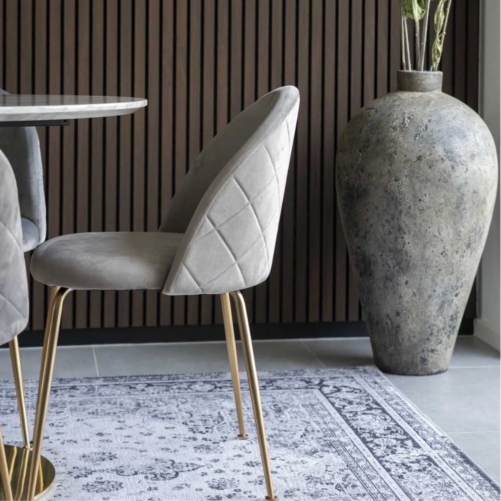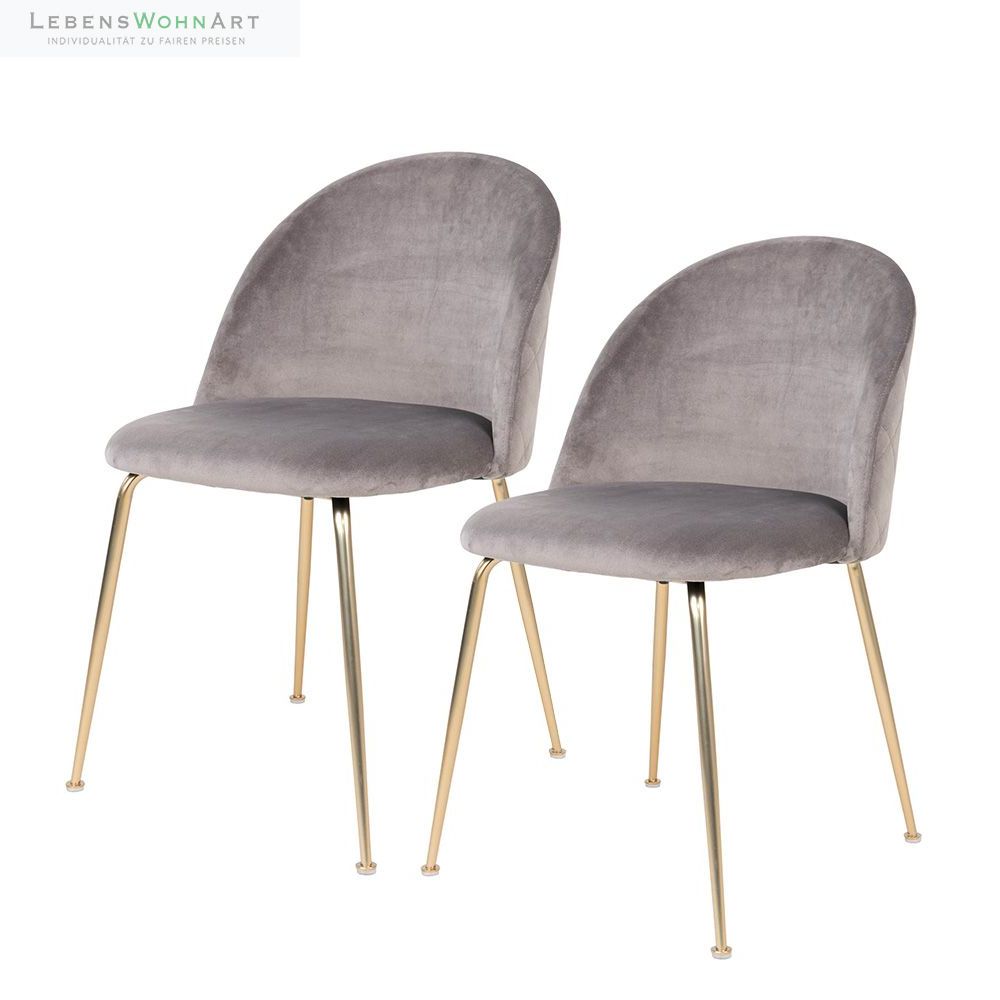 2er-Set Eleganter Stuhl GENF grau Samt - Beine in Messing-Look