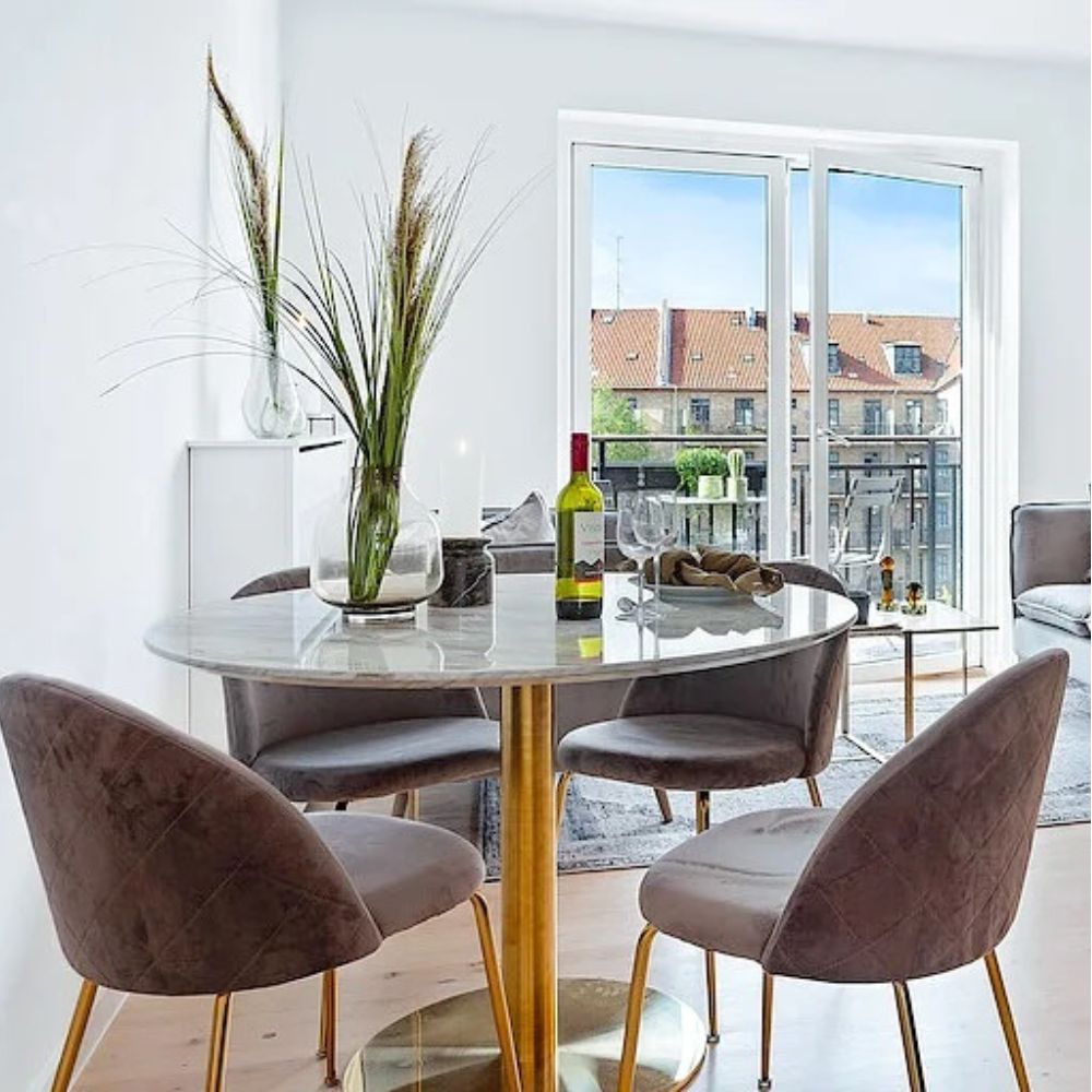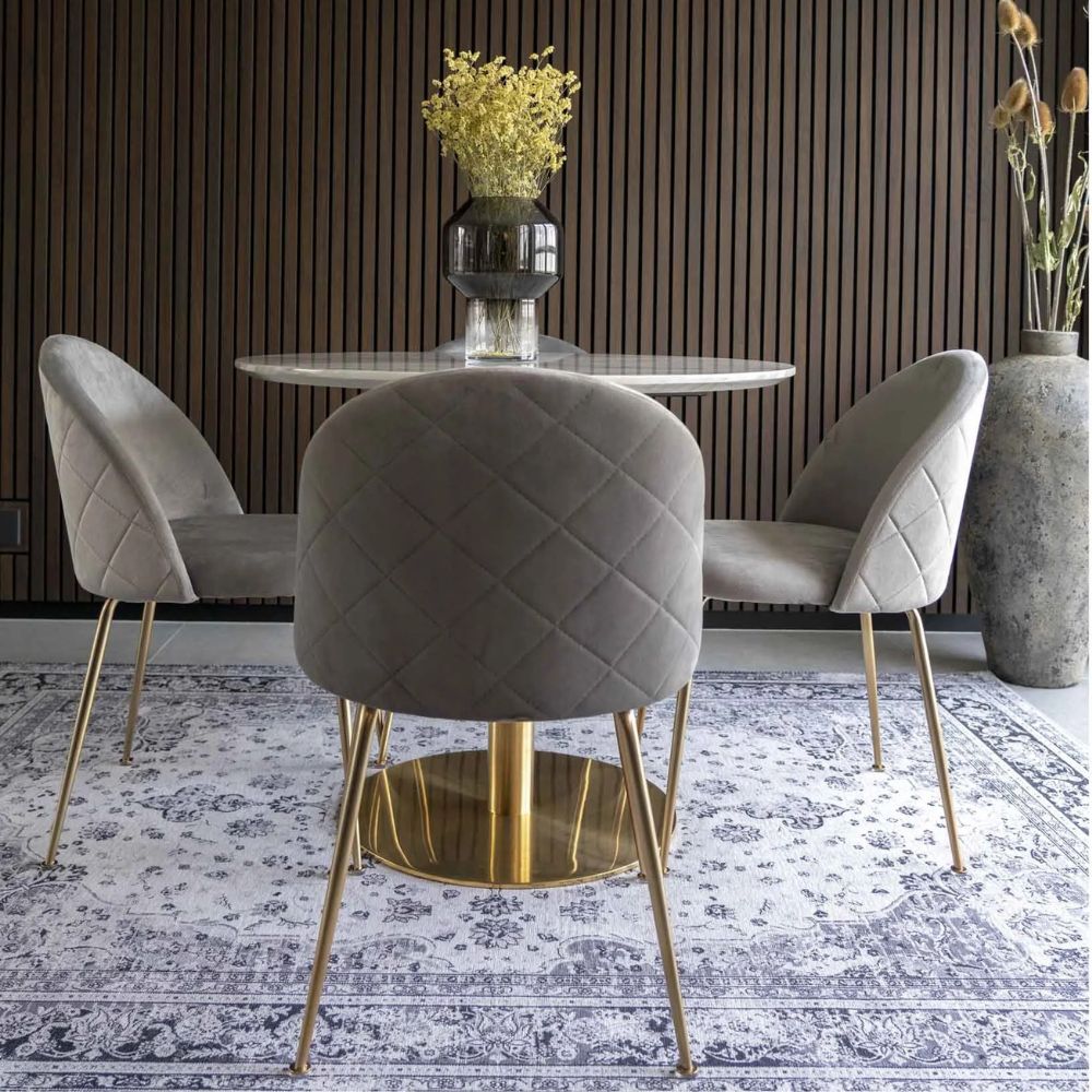 Trotz des extravaganten Bezugs aus Samt kannst Du den Stuhl mühelos mit ganz unterschiedlichen Stilen und Möbeln kombinieren. Der Stuhl passt zu einem Massivholz-Esstisch genau so gut wie zu einem modernen Keramiktisch.