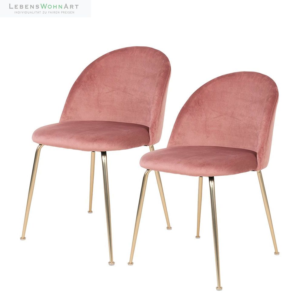 2er-Set Eleganter Stuhl GENF rose Samt - Beine in Messing-Look