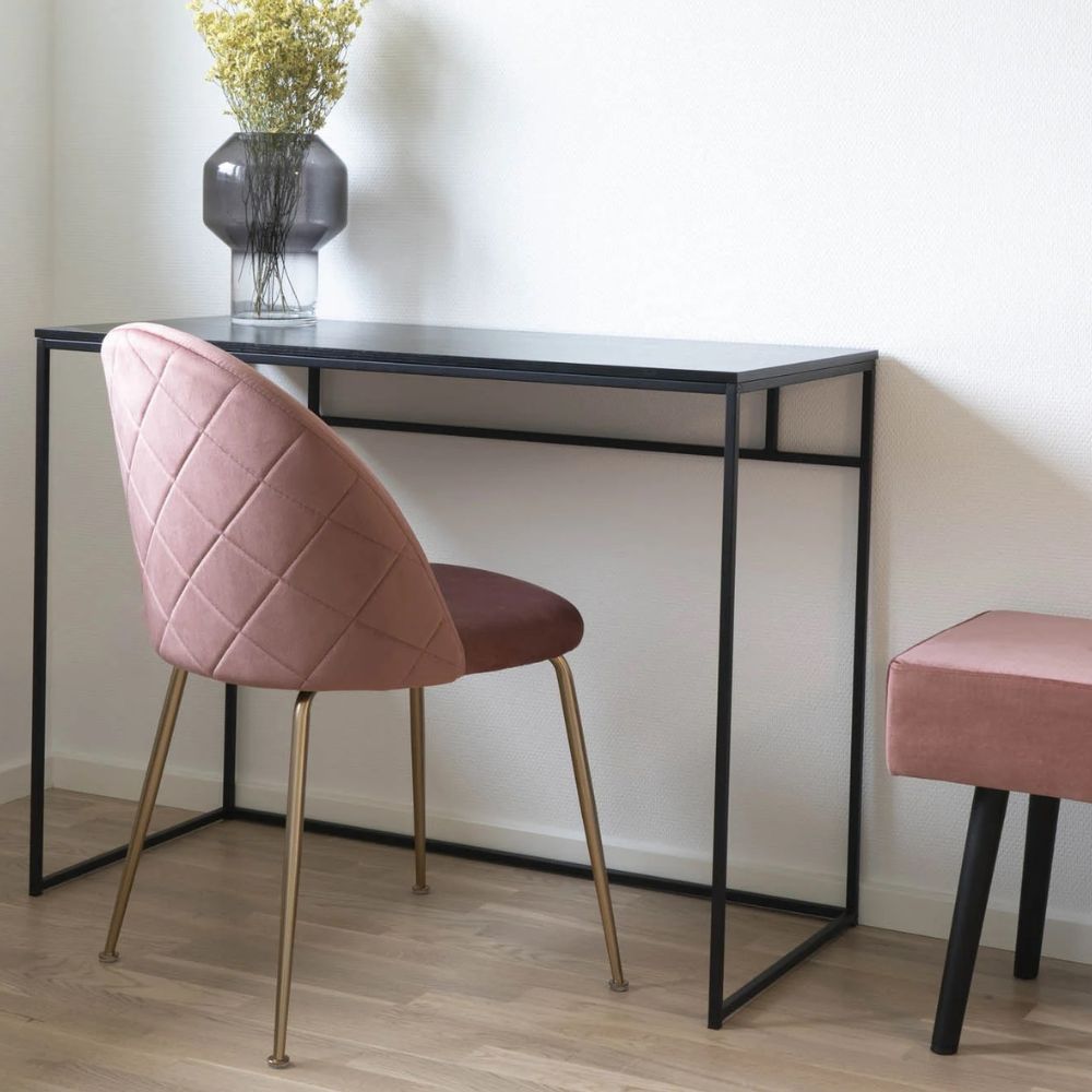 Trotz des extravaganten Bezugs aus Samt kannst Du den Stuhl mühelos mit ganz unterschiedlichen Stilen und Möbeln kombinieren. Der Stuhl passt zu einem Massivholz-Esstisch genau so gut wie zu einem modernen Keramiktisch.