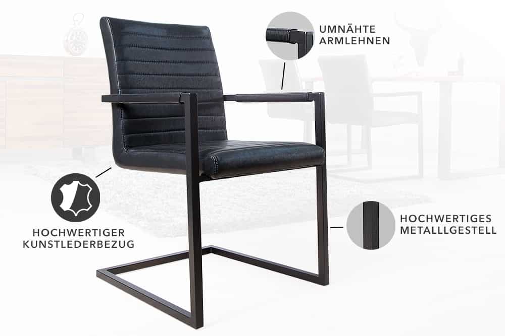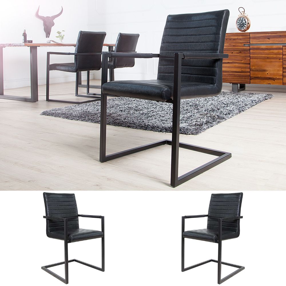 2er Set Freischwinger MENGA schwarz schwarz Industrial-Look