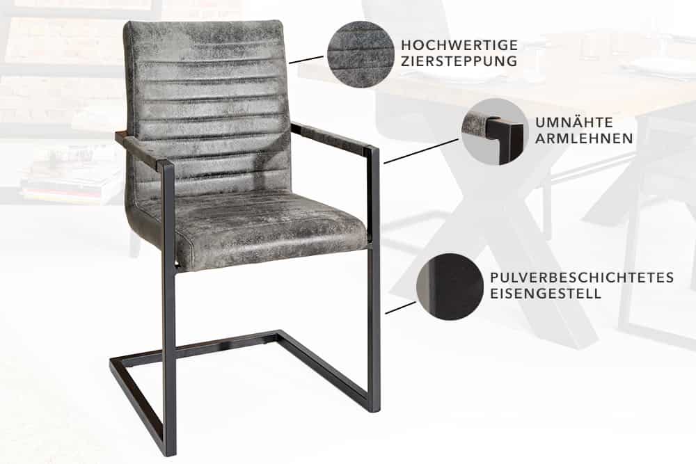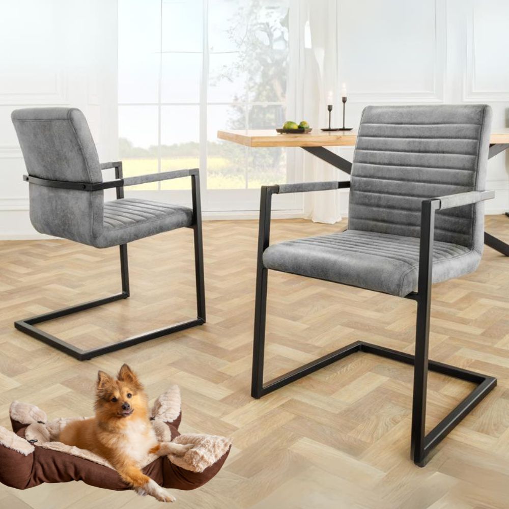 2er Set Freischwinger MENGA vintage-grau Industrial-Look
