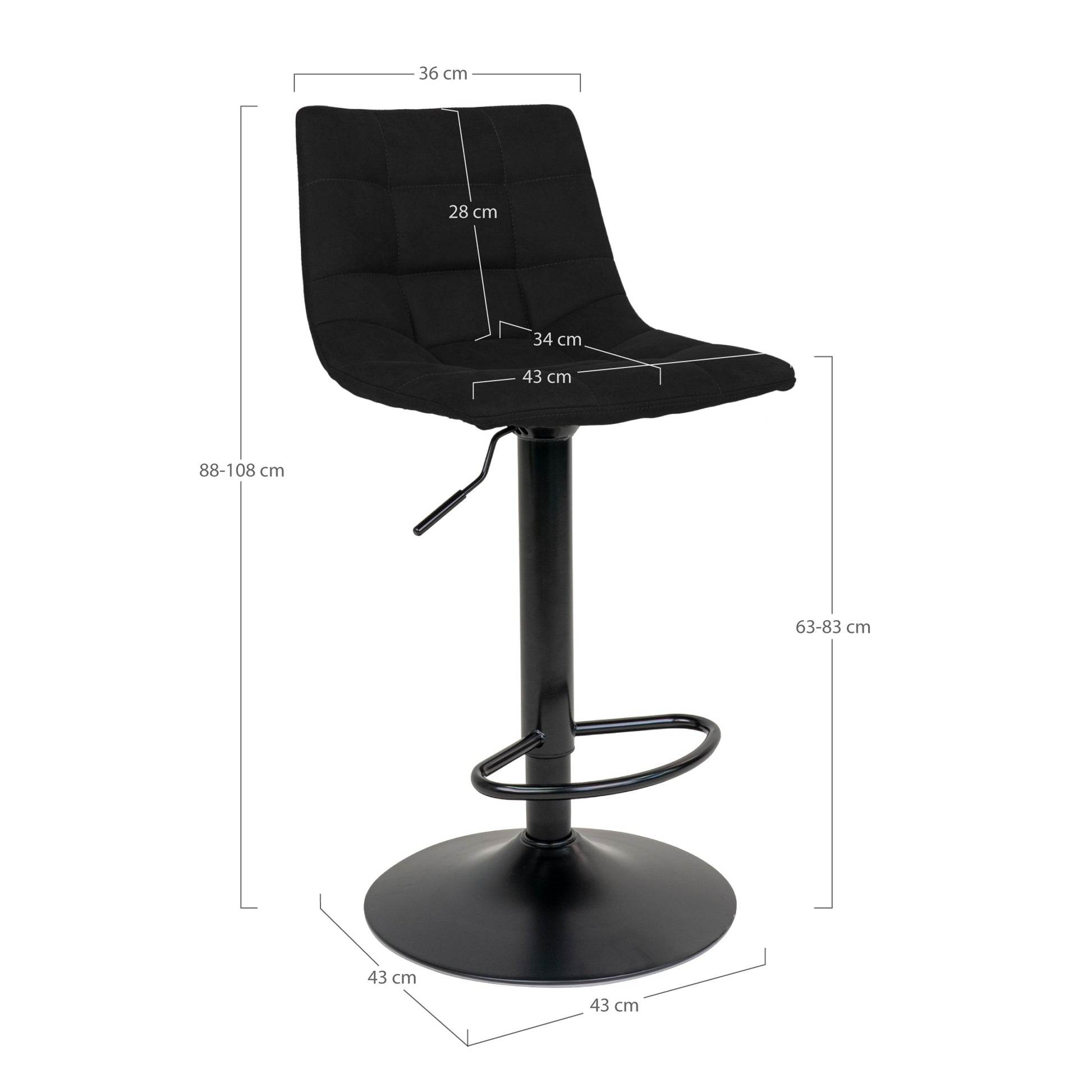 Dieser angesagte Barhocker besticht vor allem mit einer aufwendig gesteppten Sitzfläche aus Samt in einem eleganten Schwarz, die hervorragend harmoniert mit dem formschönen - ebenfalls in schwarz gehaltenen - Tulpenfuß. Die drehbare Sitzschale des Barstuhls überzeugt mit seiner bequemen Polsterung, hier lässt es sich lange Stunden gemütlich Cocktails trinken! Der Sitzt lässt sich durch einen Hebel unter dem Sitz ganz einfach in der Höhe verstellen – so passt sich der Stuhl spielend leicht der Höhe Deines Bartisches an.