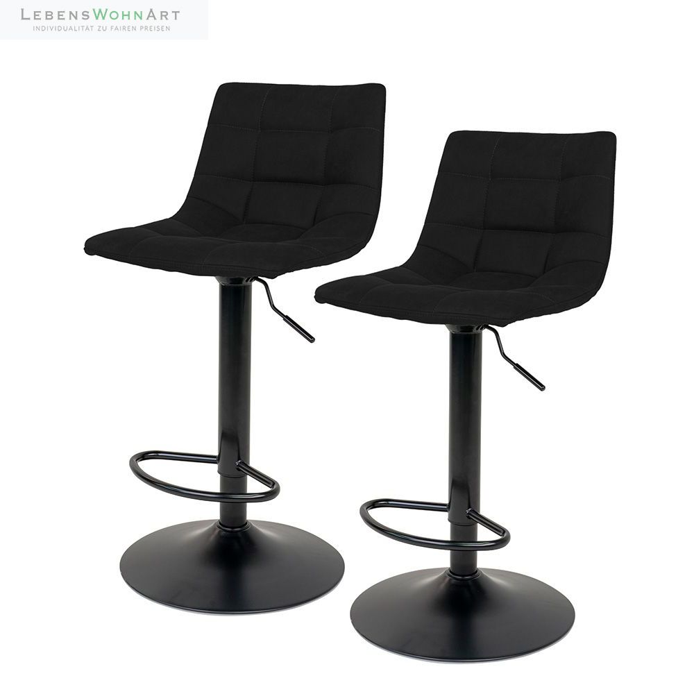 2er Set moderner höhenverstellbarer Barstuhl LEIRIA schwarz Samt