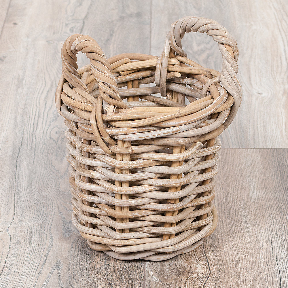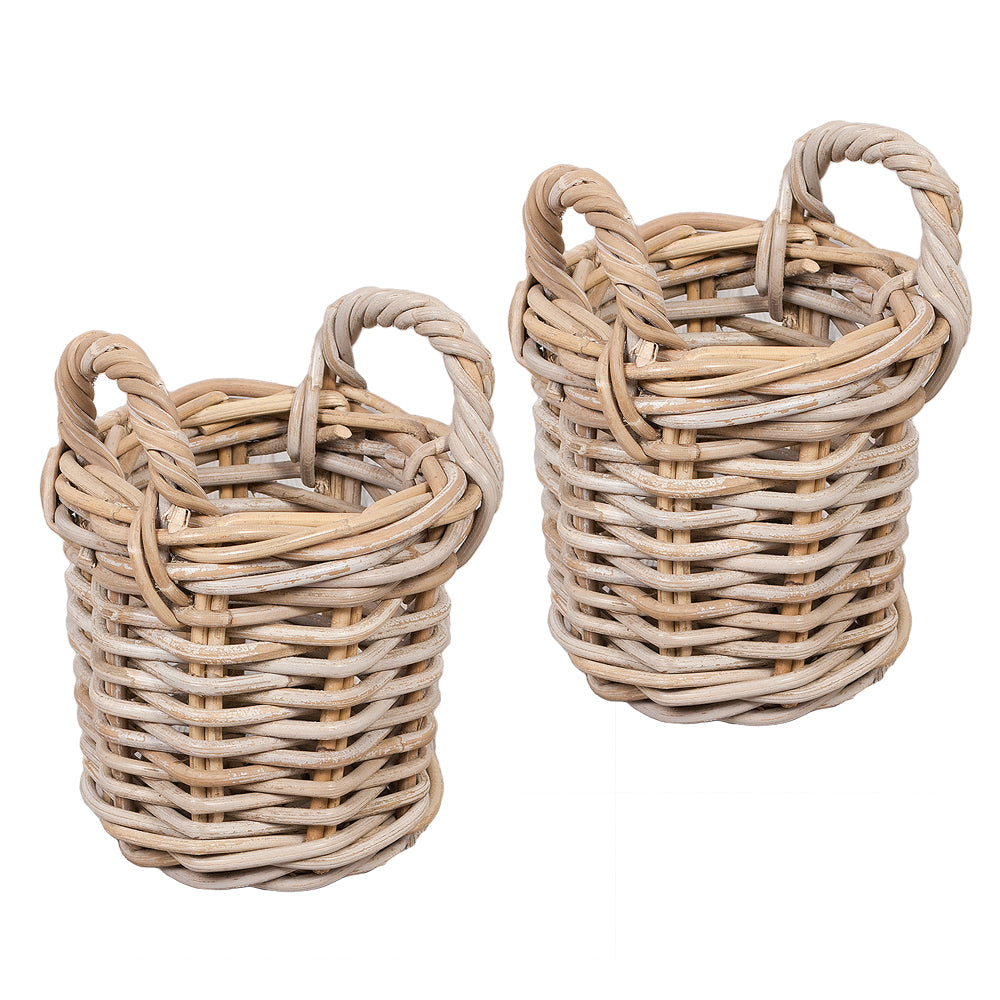 2er Set Natur-Rattankorb BAKUL rund Grey ca. 20cm