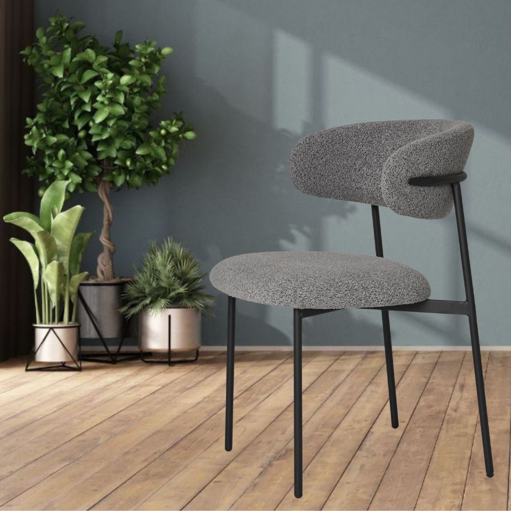 2er Set - Retro Stuhl VOGUE grau Bouclé-Stoff schwarze Beine