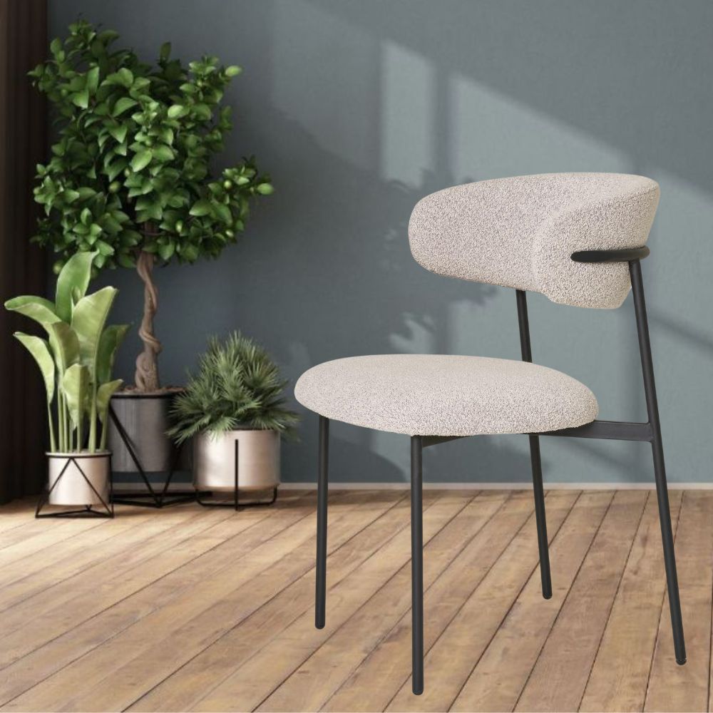 2er Set - Retro Stuhl VOGUE sand Bouclé-Stoff schwarze Beine
