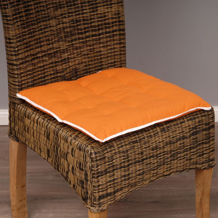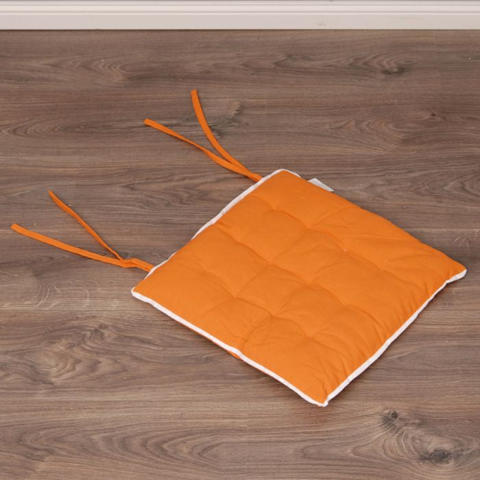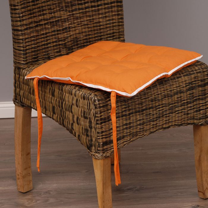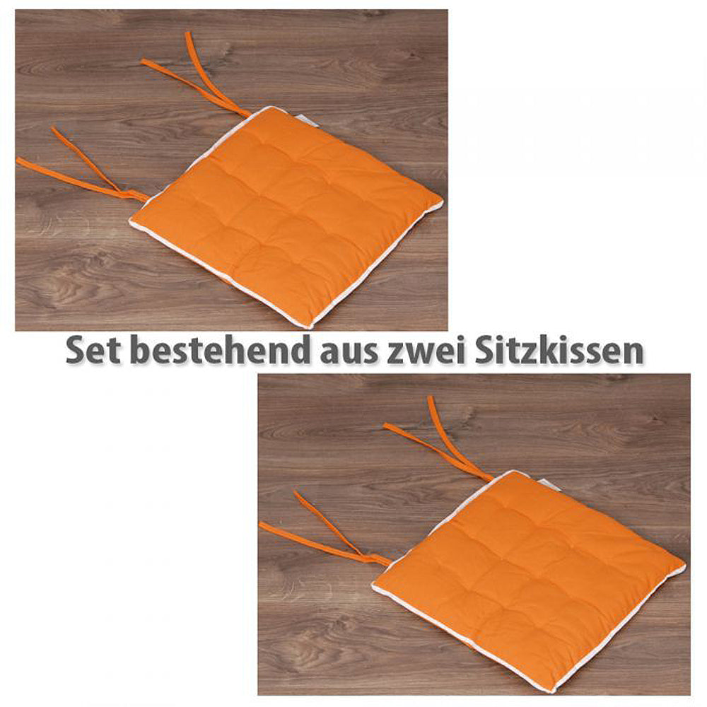 Die Sitzkissen MAX, hier im farbenfrohen Orange, eignen sich ideal für z.B. Balkon-, Gartenstühle und Sitzbänke. Die angenähten Befestigungsschnüre verhindert ein Verrutschen des Kissens und gewährlichsten einen sicheren Halt. Die angenehm weiche Polsterung sorgt für Bequemlichkeit.