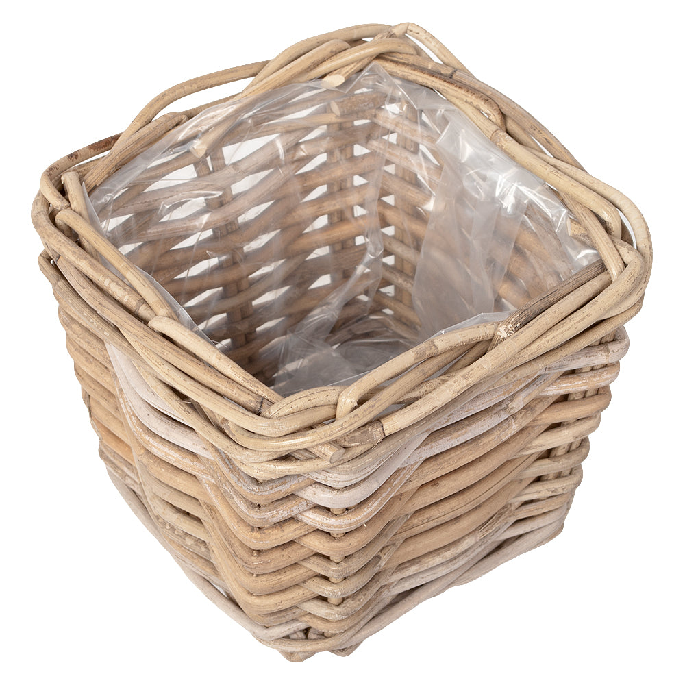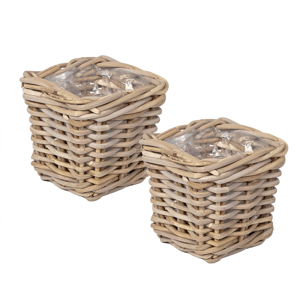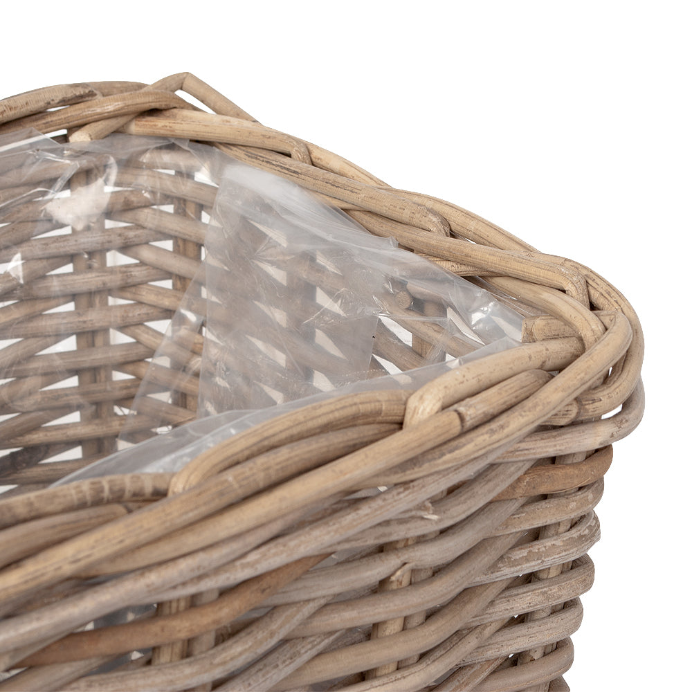 2tlg. Pflanzkorb-Set VERONA-Rechteckig mit Kunststoff-Inlay. Handgeflochten aus besonders robustem Rattan (Kubu Grey) verschönert dieser Artikel jedes Ambiente.