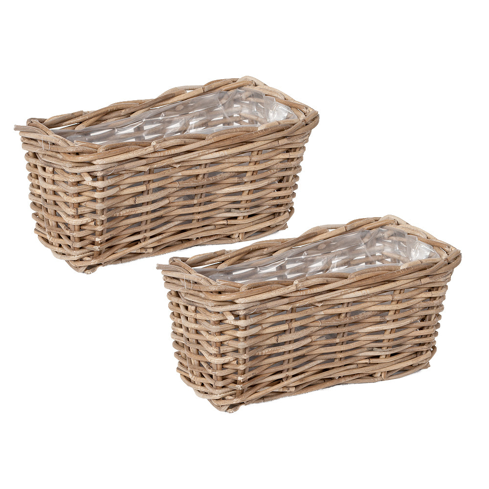 2tlg. Pflanzkorb-Set VERONA-Rechteckig mit Kunststoff-Inlay. Handgeflochten aus besonders robustem Rattan (Kubu Grey) verschönert dieser Artikel jedes Ambiente.