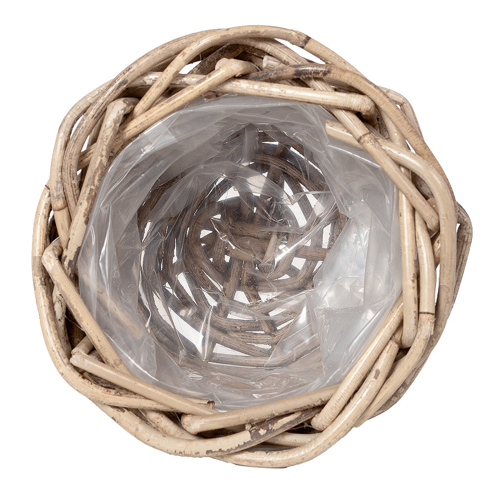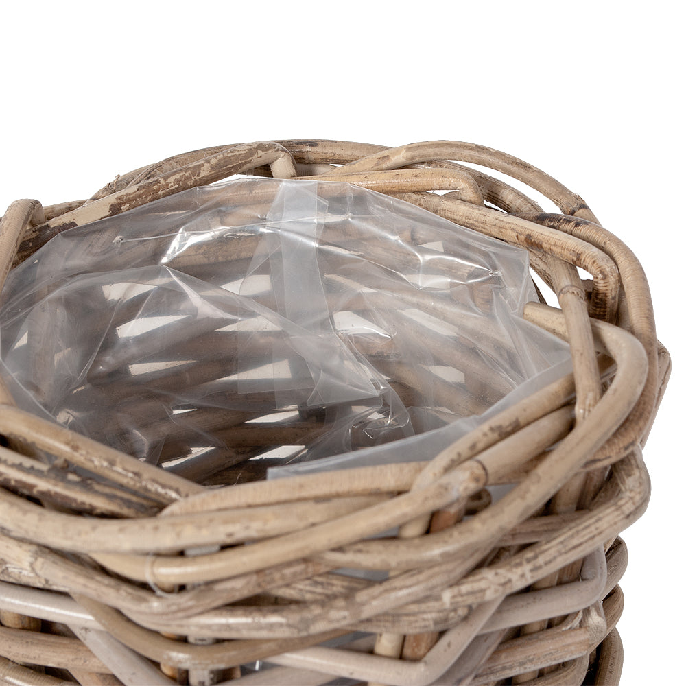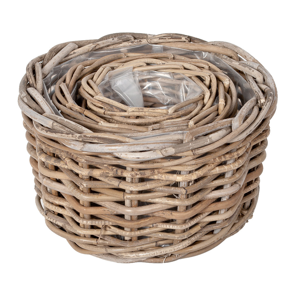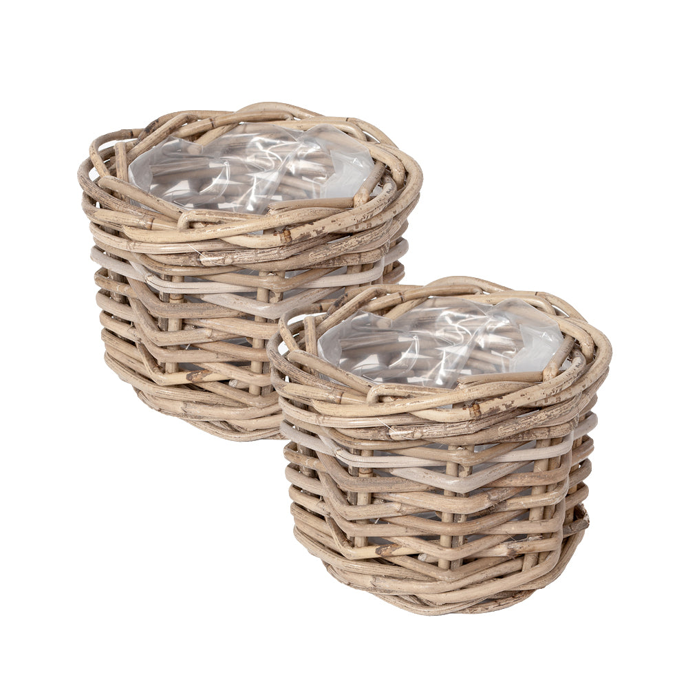 2tlg. Pflanzkorb-Set VERONA-Rund mit Kunststoff-Inlay. Handgeflochten aus besonders robustem Rattan (Kubu Grey) verschönert dieser Artikel jedes Ambiente.