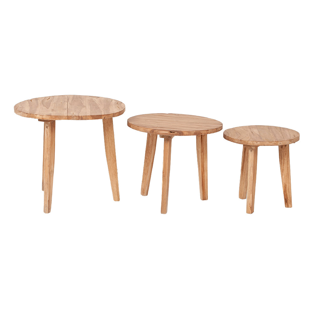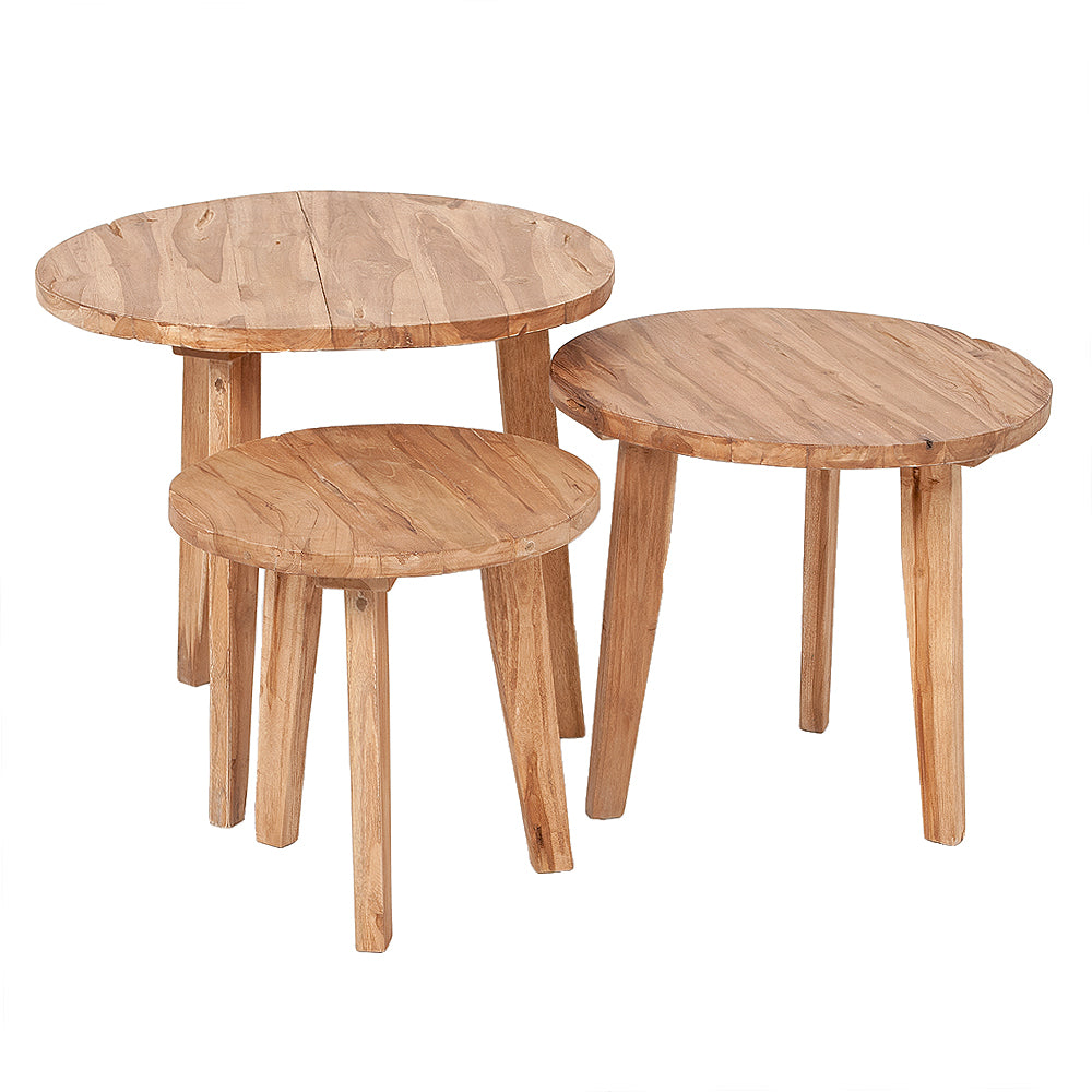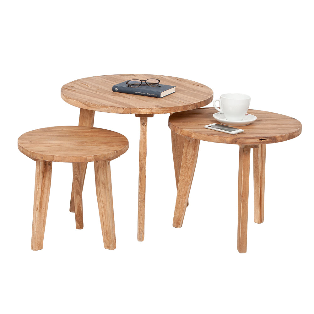 3-tlg. Teak Beistelltisch-Set JAVA Natural