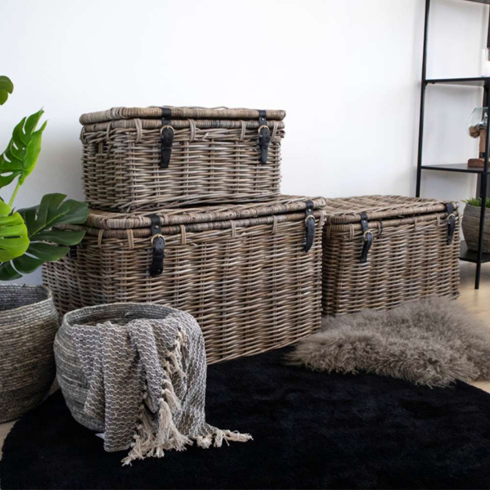Schönes Truhenset aus natürlichem Rattan.