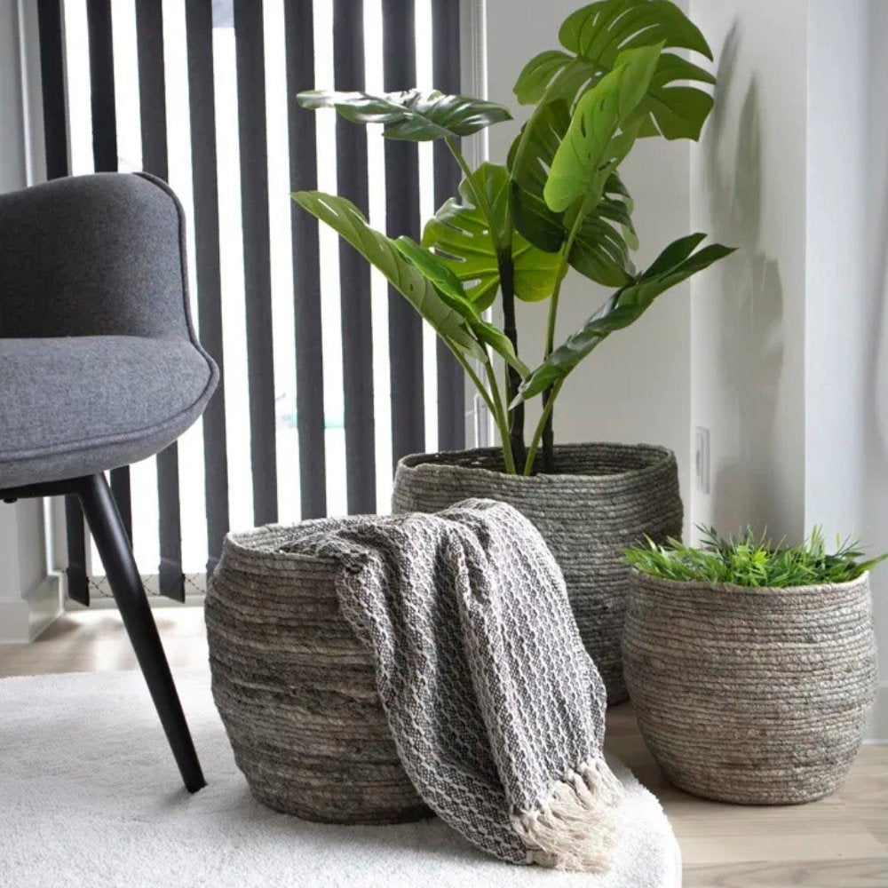 3er Korb-Set CESTINI 30cm Maisblatt grau Handarbeit Naturprodukt