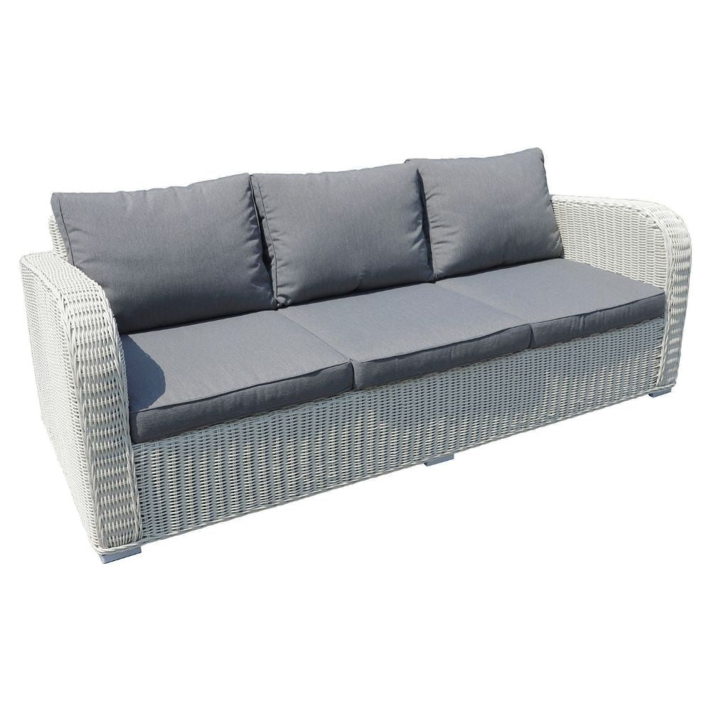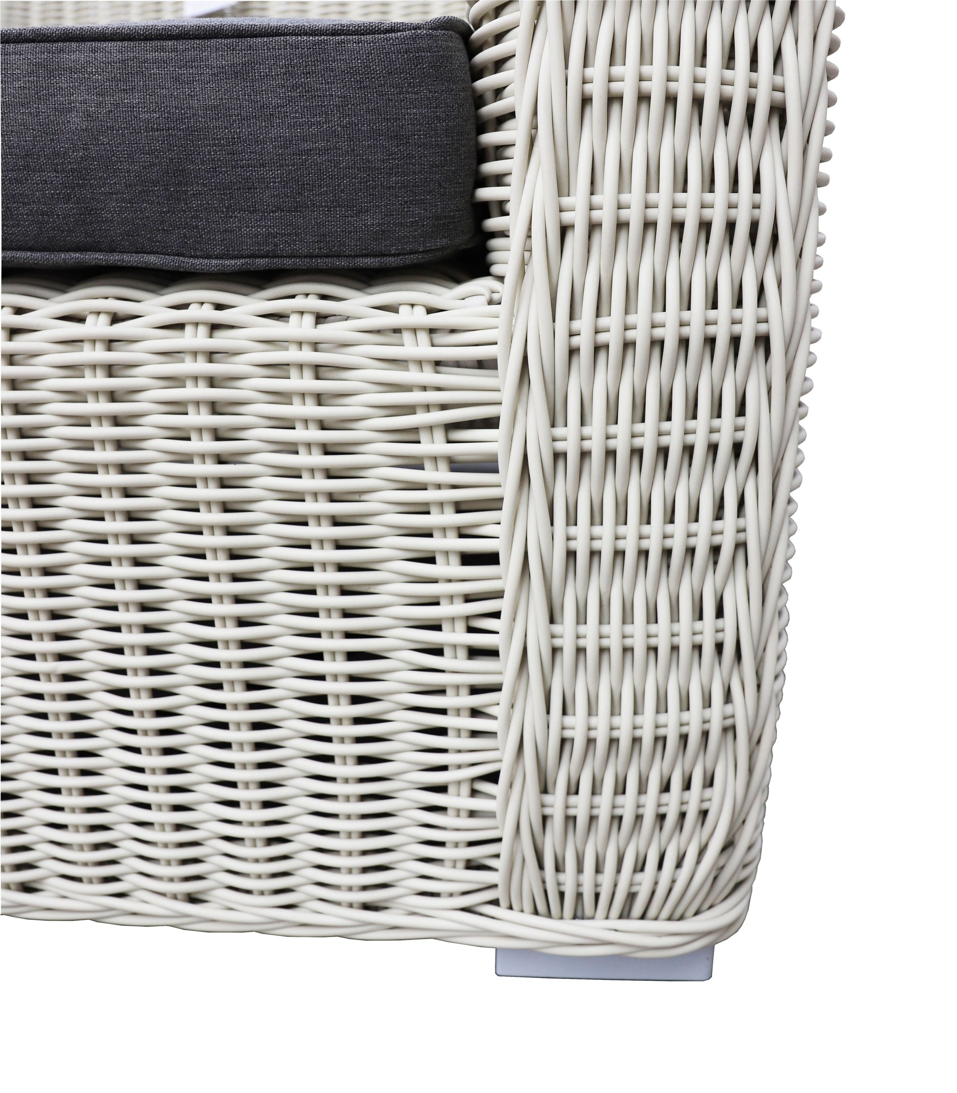 3er Lounge Sofa VITA rundes Polyrattan Eierschalenweiß Gartenmöbel