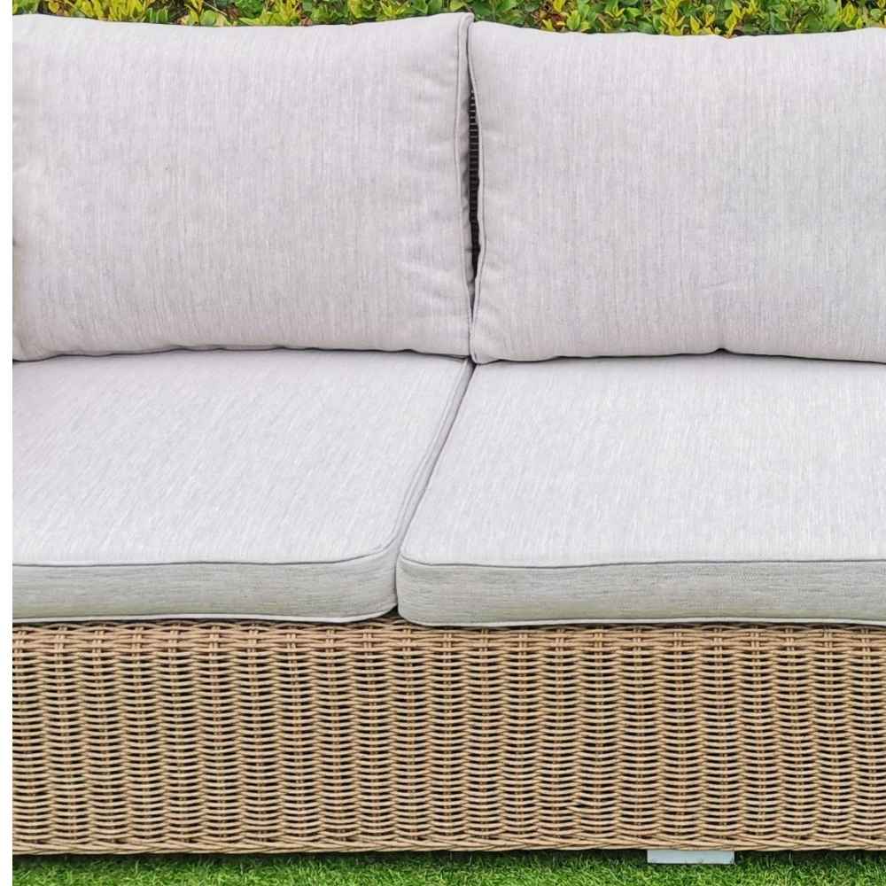 3er Lounge Sofa VITA 210cm rundes Polyrattan Natural Gartenmöbel
