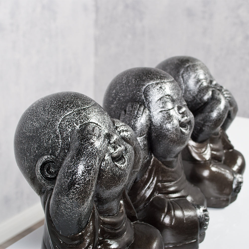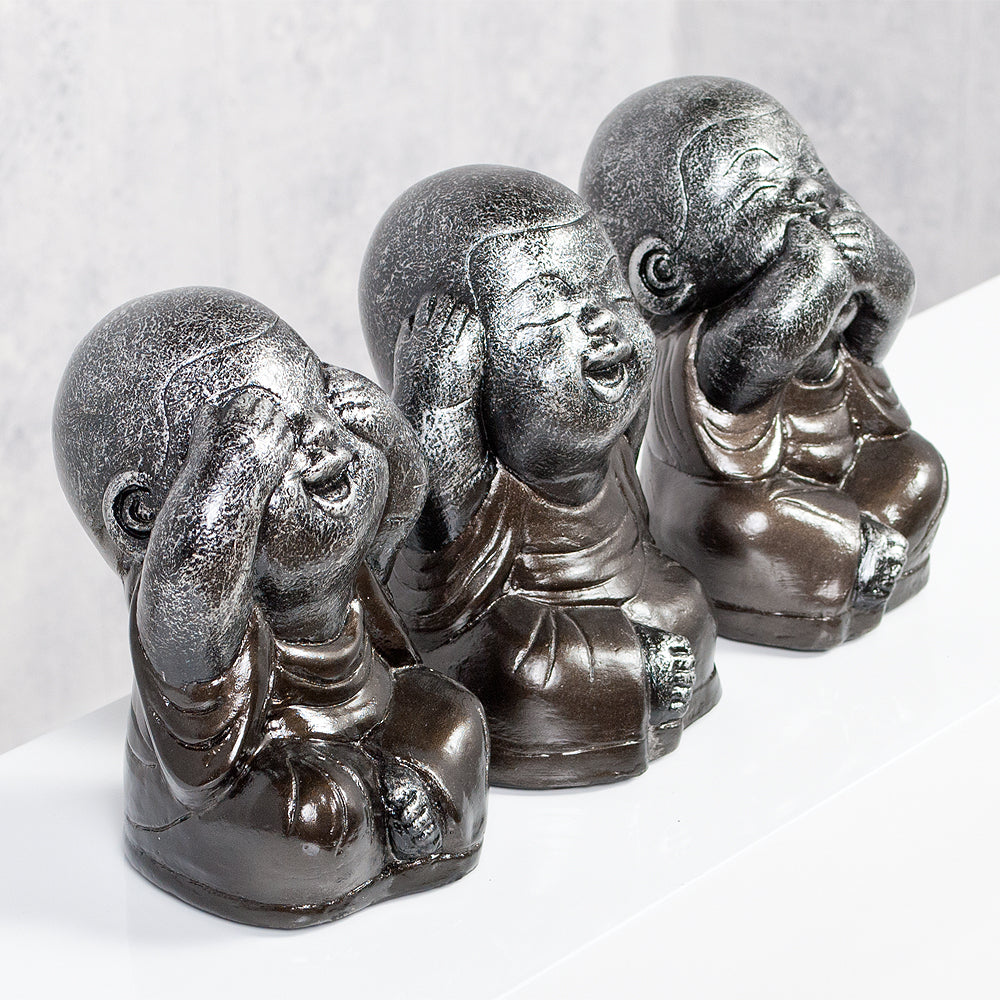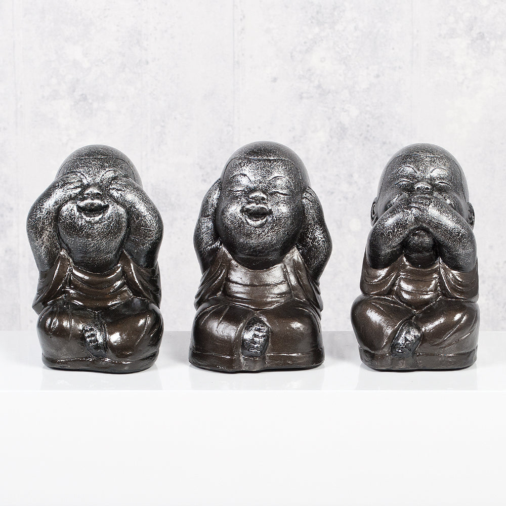 3er Set SHAOLIN Figuren Anthrazit aus Zement