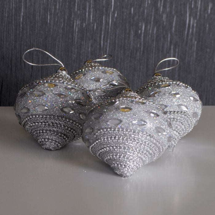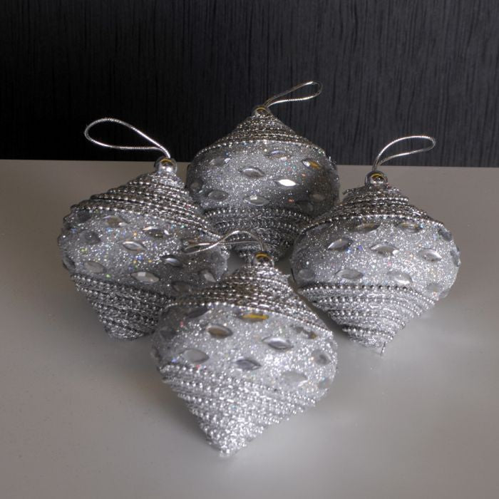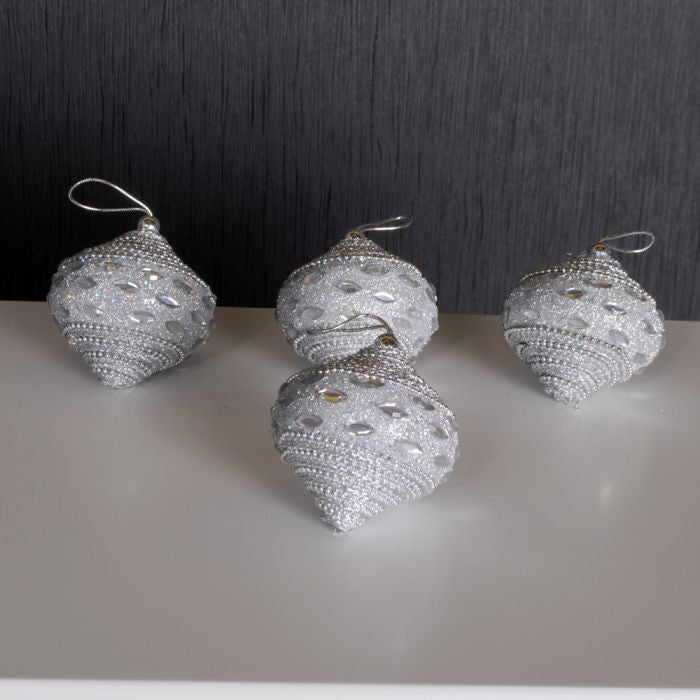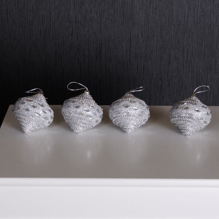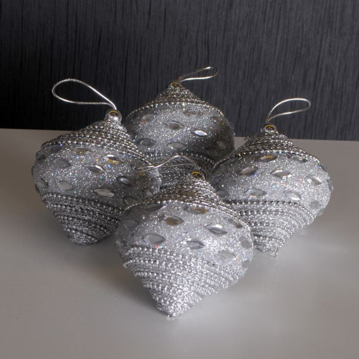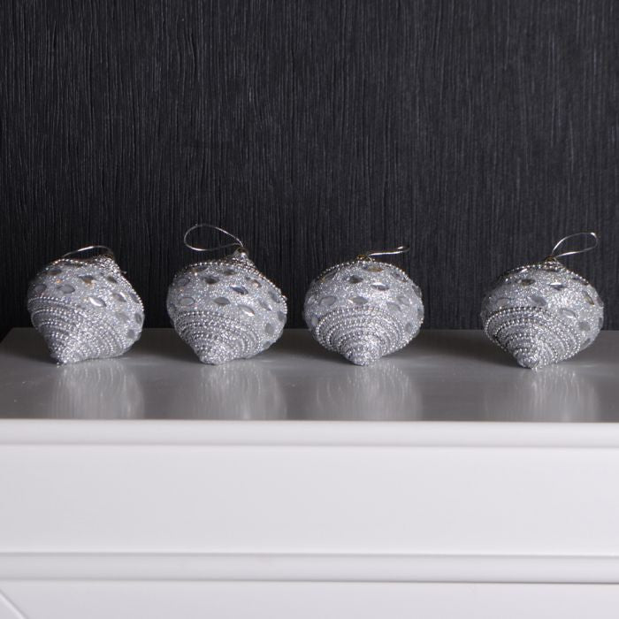 4er Set Christbaumkugeln Weihnachtsbaumschmuck SILVER PEARL