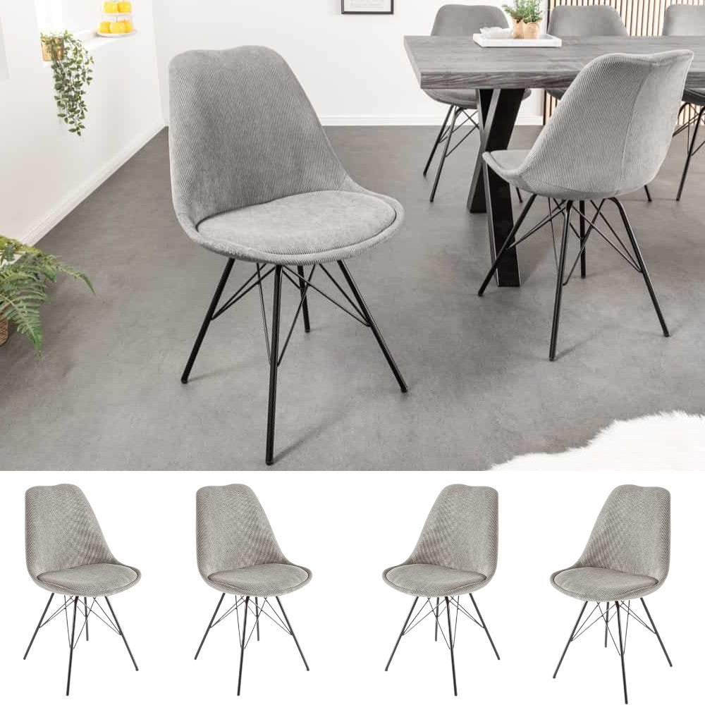 4er Set Design-Klassiker Stuhl NORWAY grau Cord Metallgestell
