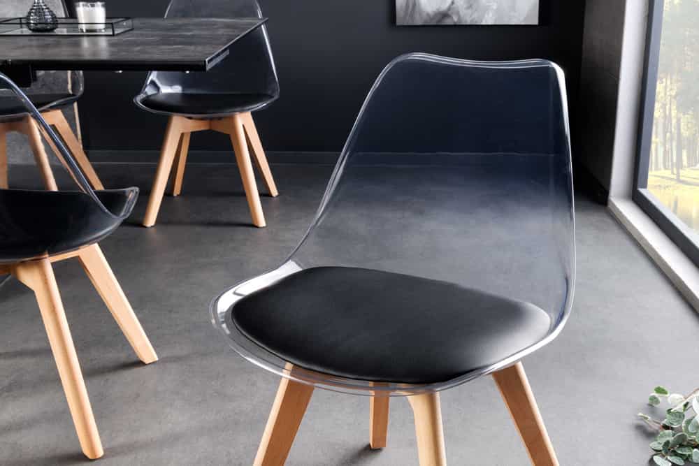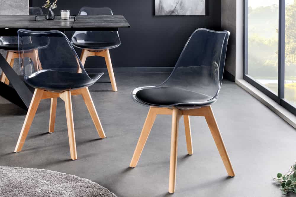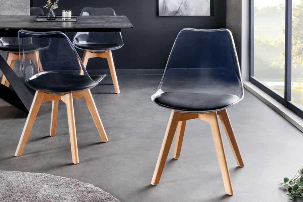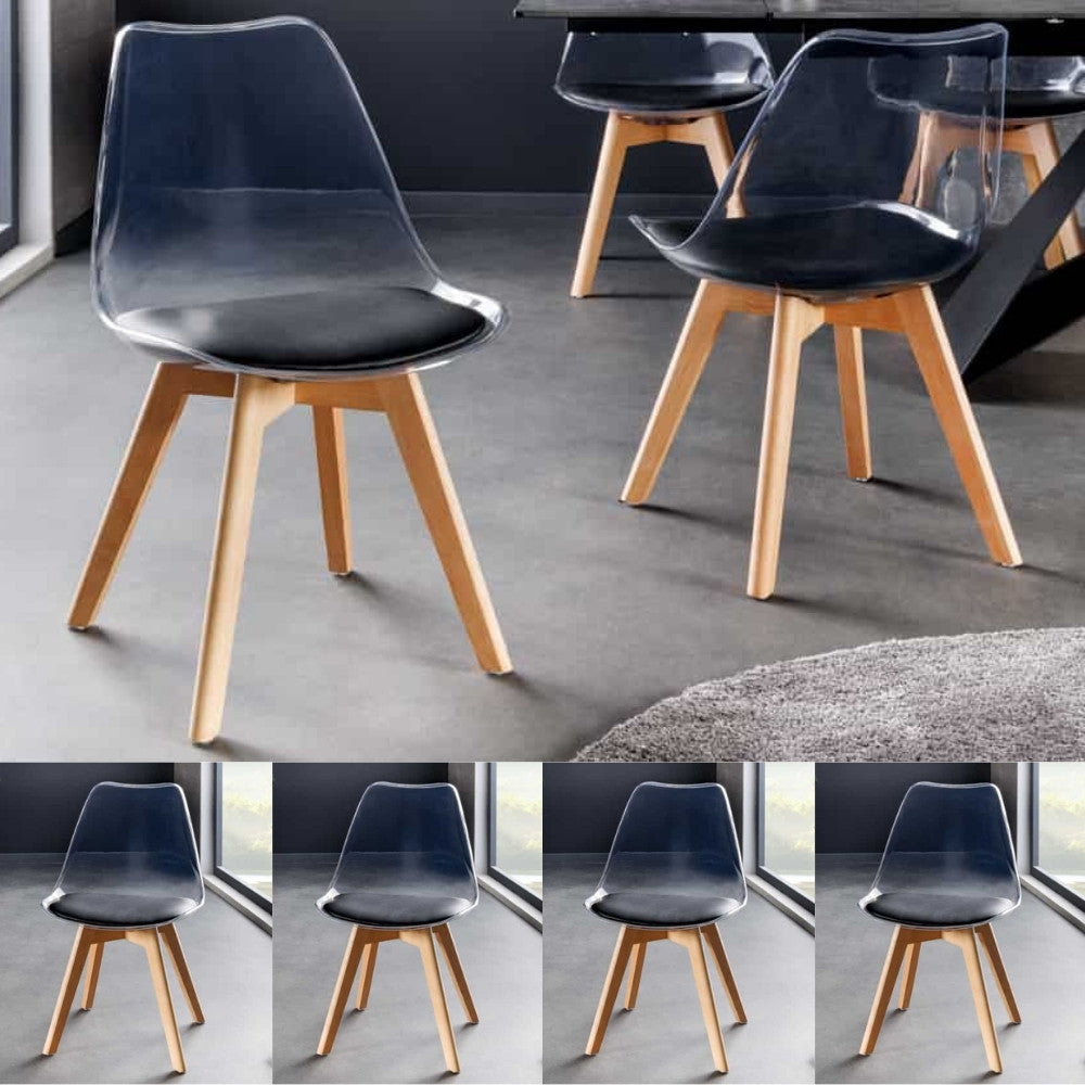 4er Set Design-Klassiker Stuhl NORWAY transparent schwarz Buchenholz