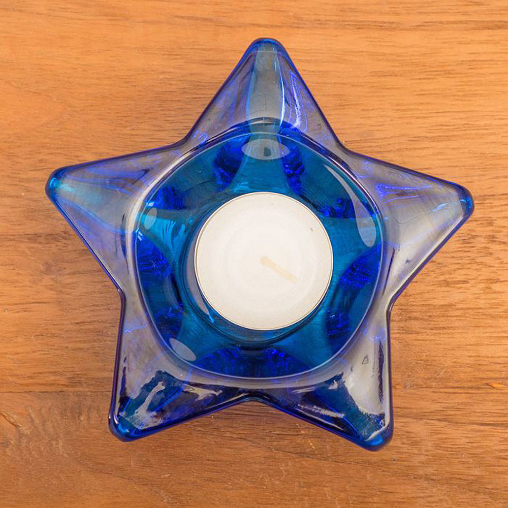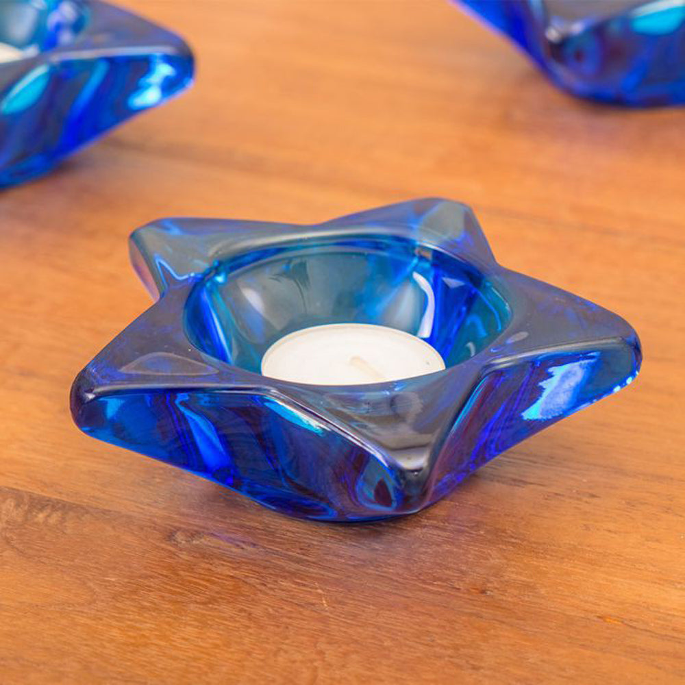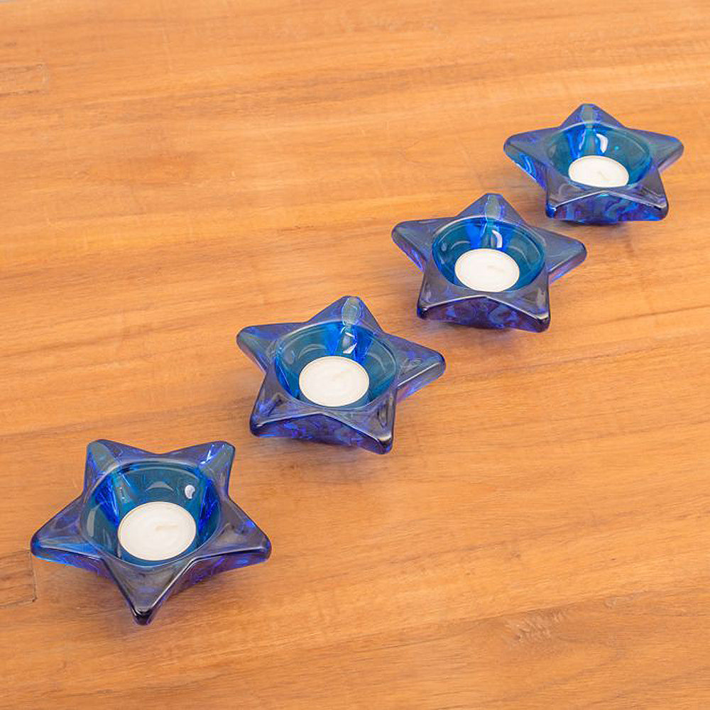 - 4 Teelichthalter aus Glas in Form von Sternen.