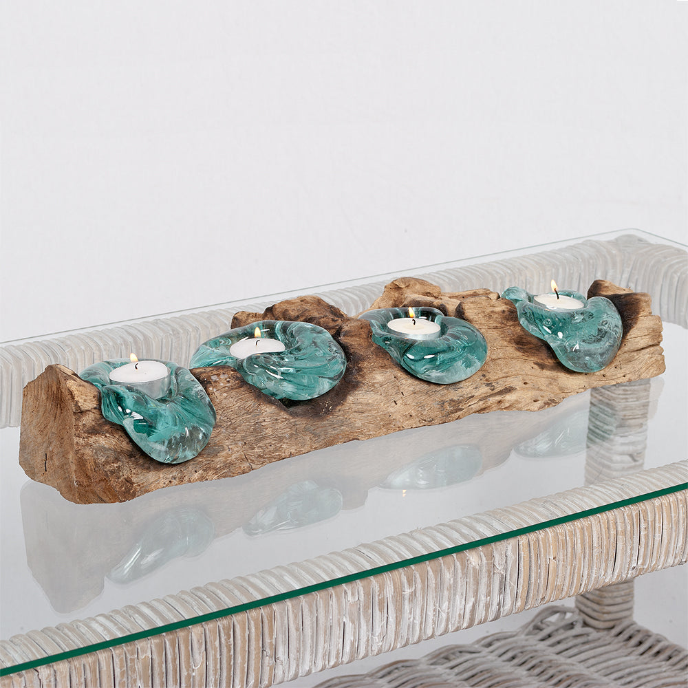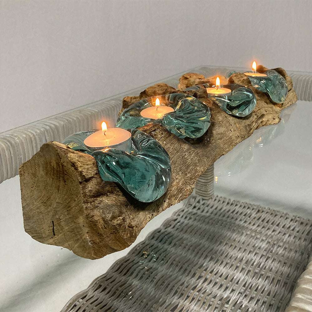 Teakwurzel 4er Teelichthalter DROP Weihnachtsdekoration