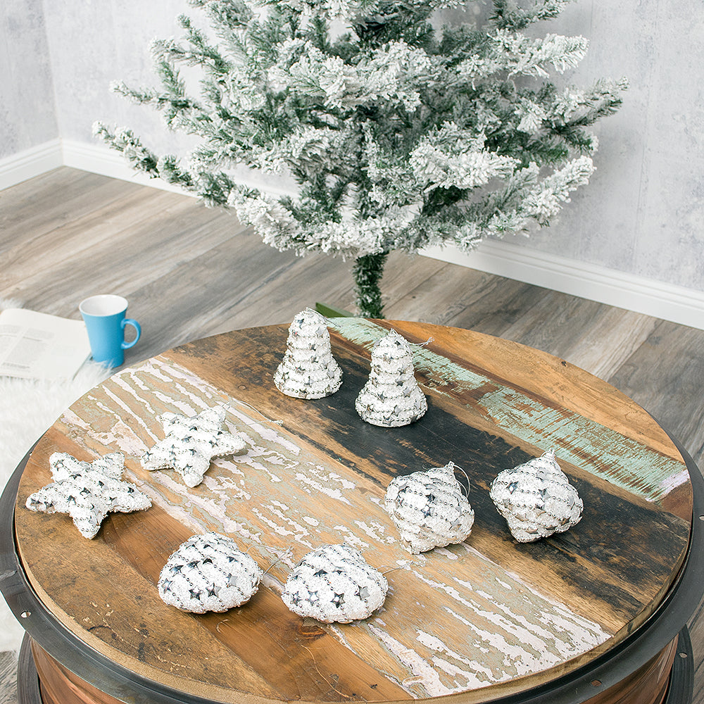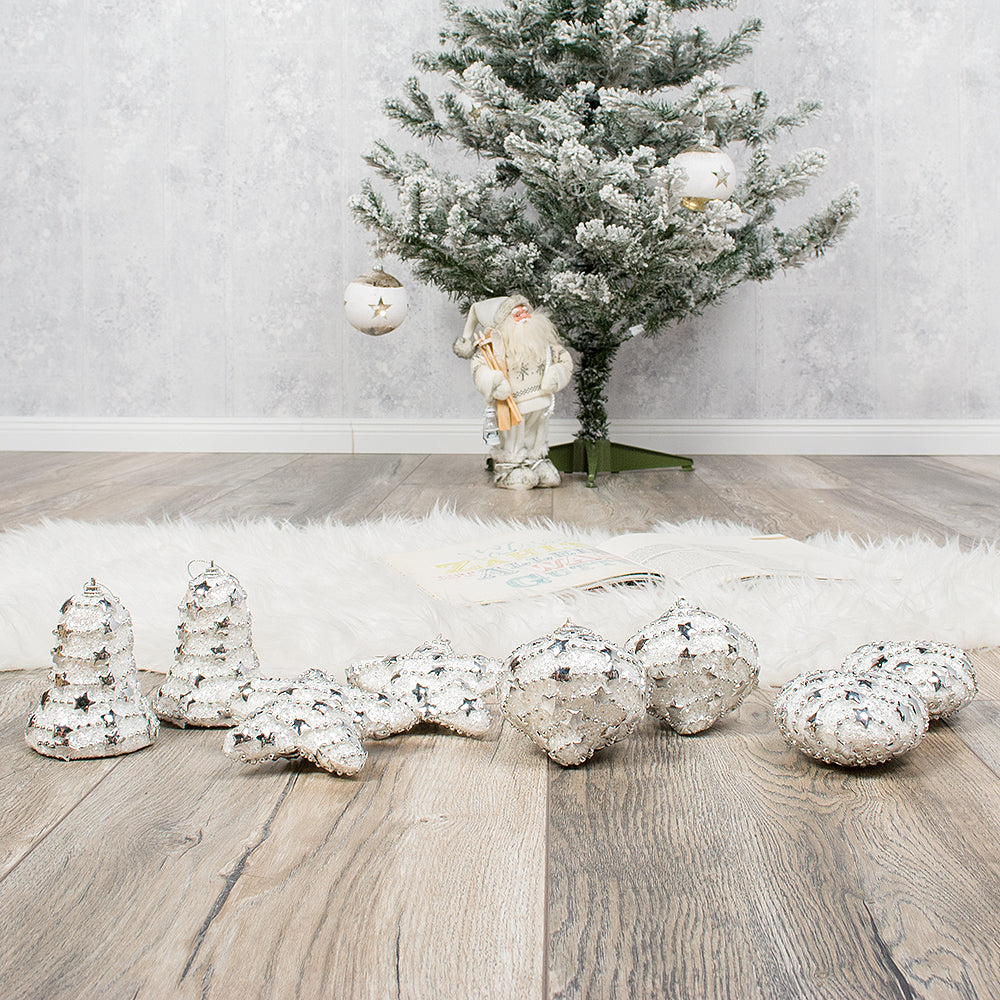 8-tlg. Set Weihnachtsbaumkugeln WHITE CHRISTMAS
