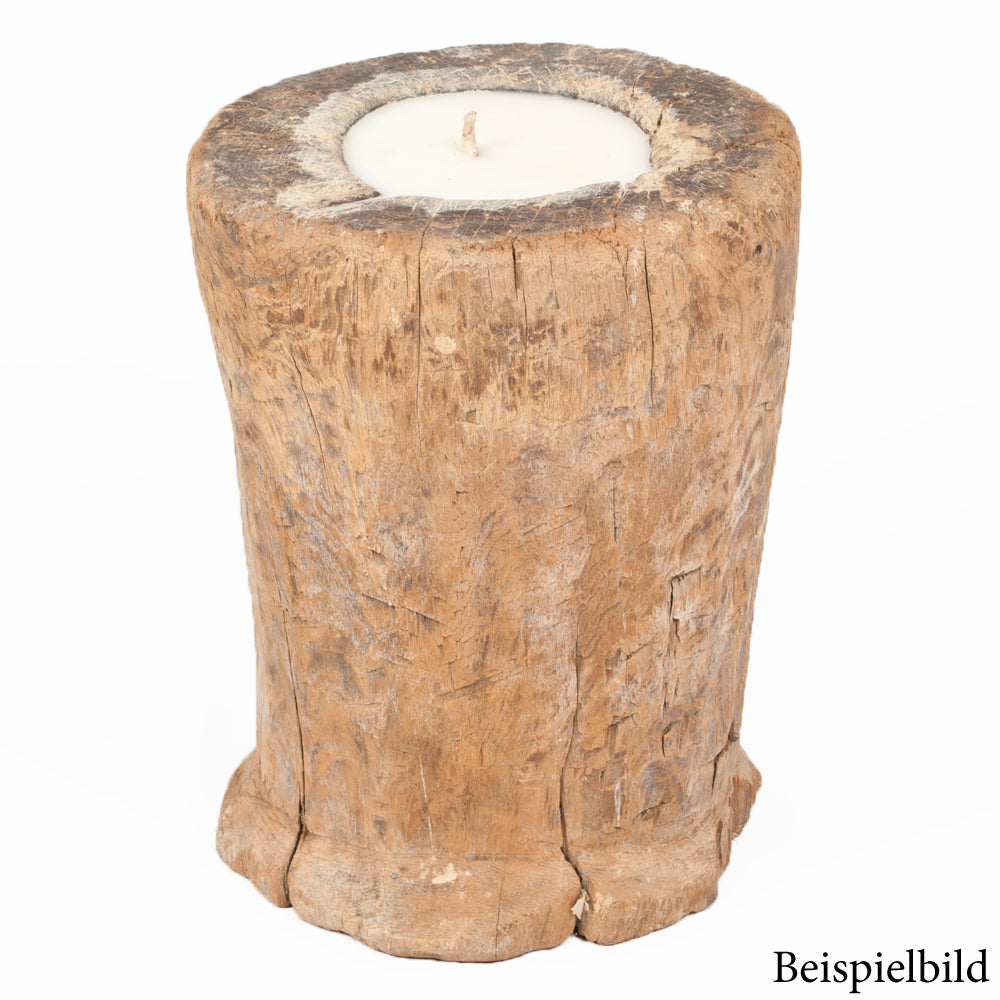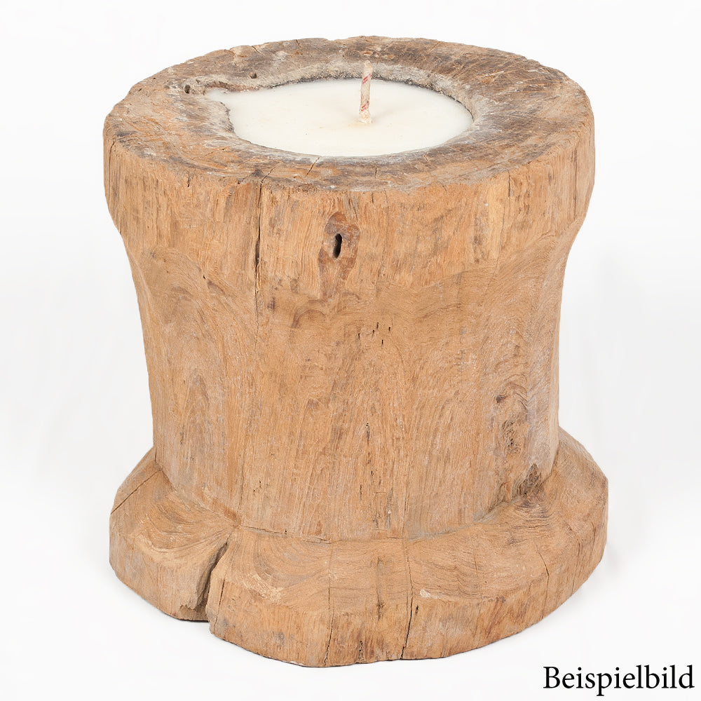 Der außergewöhnliche ANTIGUO ist ein echtes Highlight. Ganz gleich ob im Wohnzimmer oder einer anderen Räumlichkeit. Gefertigt aus einem antiken, orginalen Reisstampfgefäß hat dieser Artikel seinen ganz besonderen nostalgischen, rustikalen Charme und ist immer ein Unikat. Die eingelassene, passende Kerze ist im Lieferumfang enthalten. Natürliche Risse, Flecken, Astlöcher und Gebrauchsspuren aus dem Holztrocknungsprozess sind gewollt und Teil der immer einzigartigen Charakteristik des Holzes.