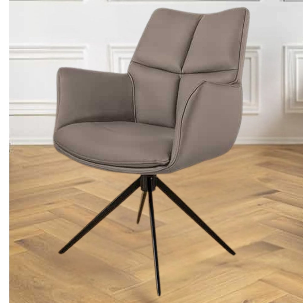 Stell Dir vor, wie Du Dich in das weiche Echtleder sinken lässt und dank der bequemen Armlehnen entspannst. Das Echtleder in der Farbe Taupe, in Kombination mit dem schwarzen Metallgestell, macht diesen Stuhl zu einem echten Hingucker in Deinem Zuhause. Ein Stück Luxus, das Du jeden Tag genießen kannst.