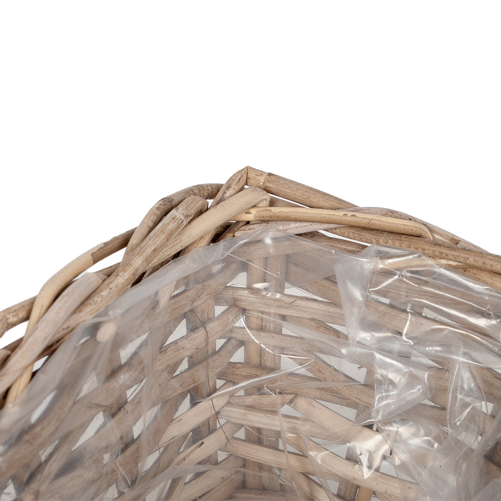 Hängekorb VERONA mit Kunststoff-Inlay. Handgeflochten aus besonders robustem Rattan (Kubu Grey) verschönert dieser Artikel jeden Balkon. Die beiden Haken ermöglichen das einfache Aufhängen am Geländer.