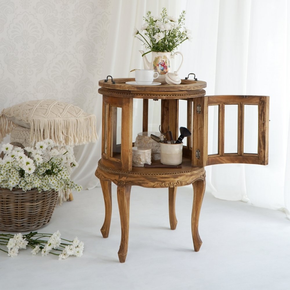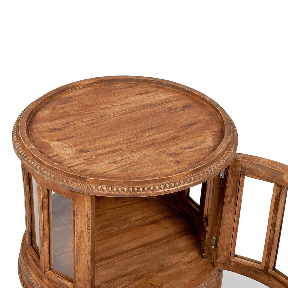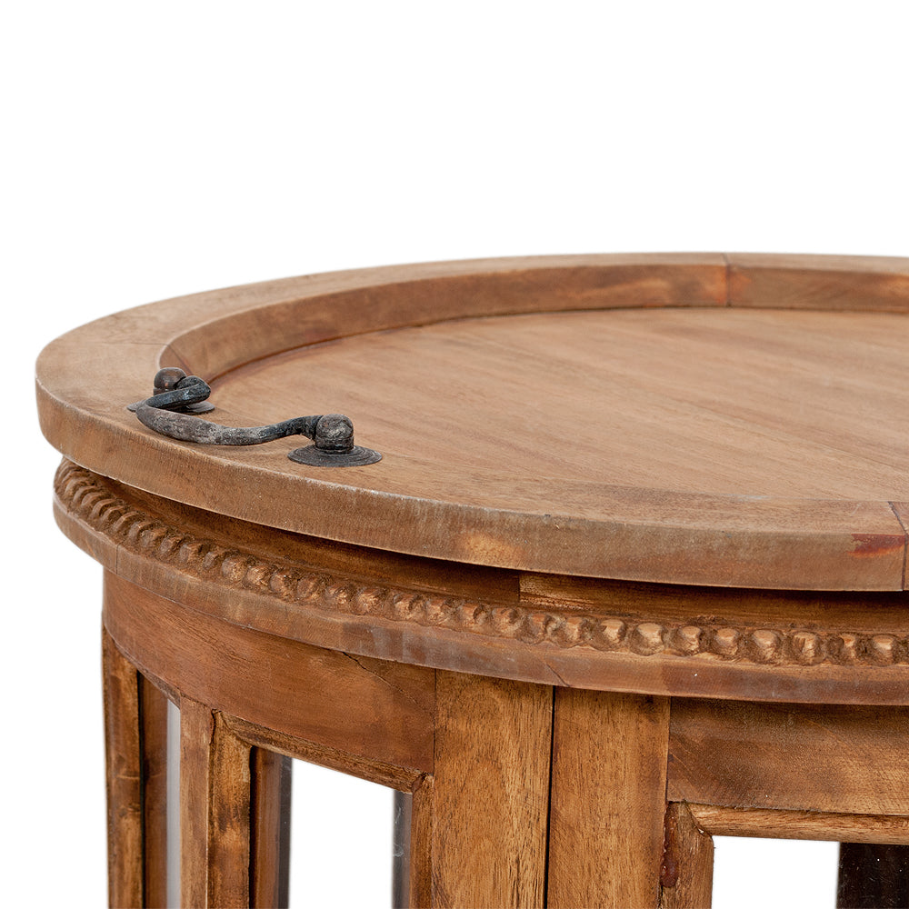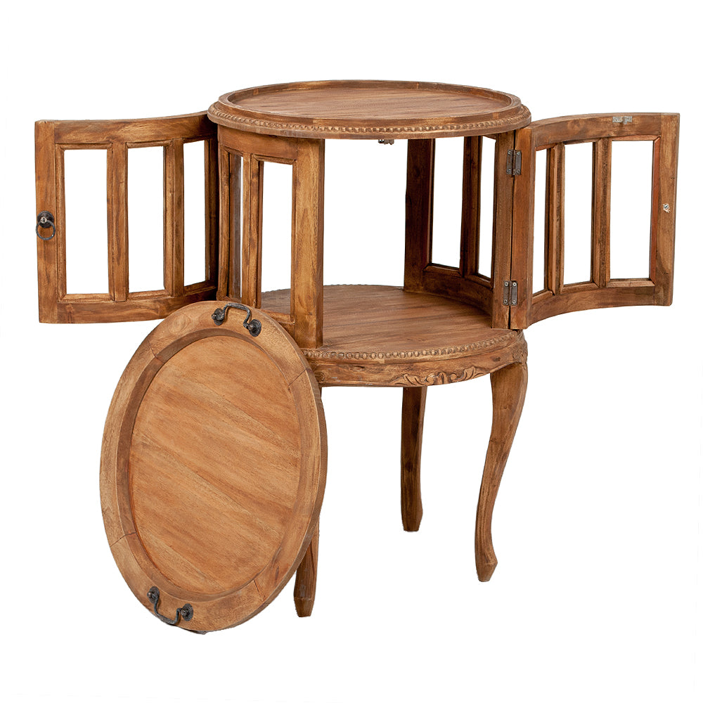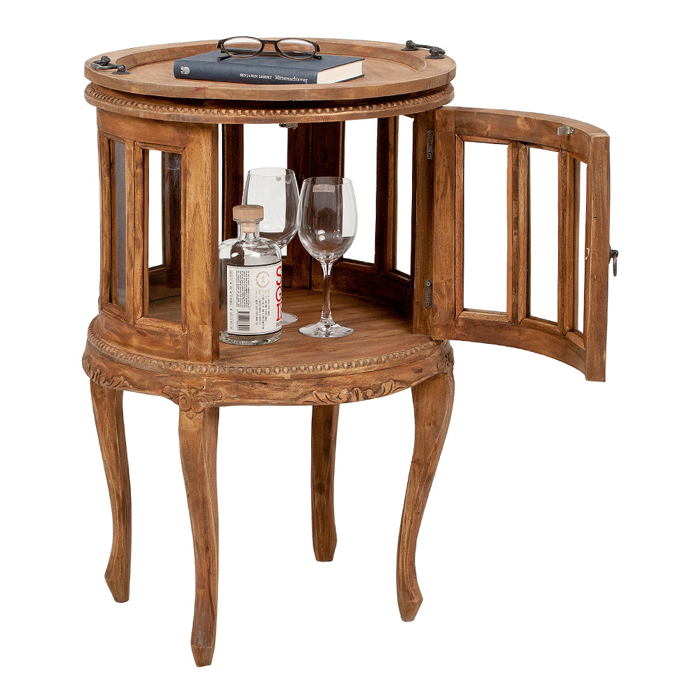 Massivholz Barschrank CORUNA-Rund 50cm Antik Natural Servier-Tablett