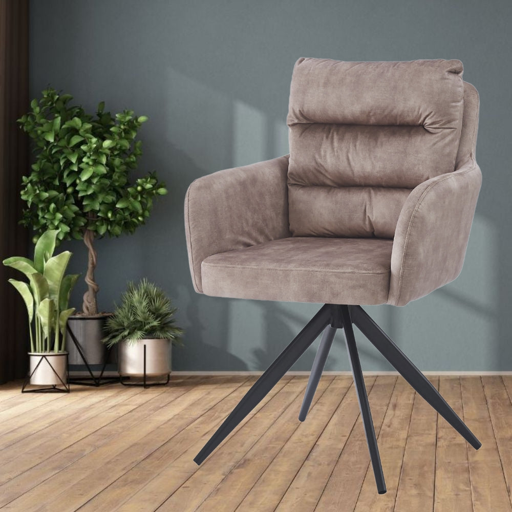 Ob als stylischer Esszimmerstuhl, bequemer Arbeitsplatz-Sessel oder einladender Lounge-Chair - unser Drehstuhl GEORGIA passt sich perfekt Deinen Bedürfnissen an. Seine zeitlose Ästhetik und der strukturierte Samtbezug harmonieren mit verschiedenen Einrichtungsstilen und machen an jedem Tisch eine gute Figur.