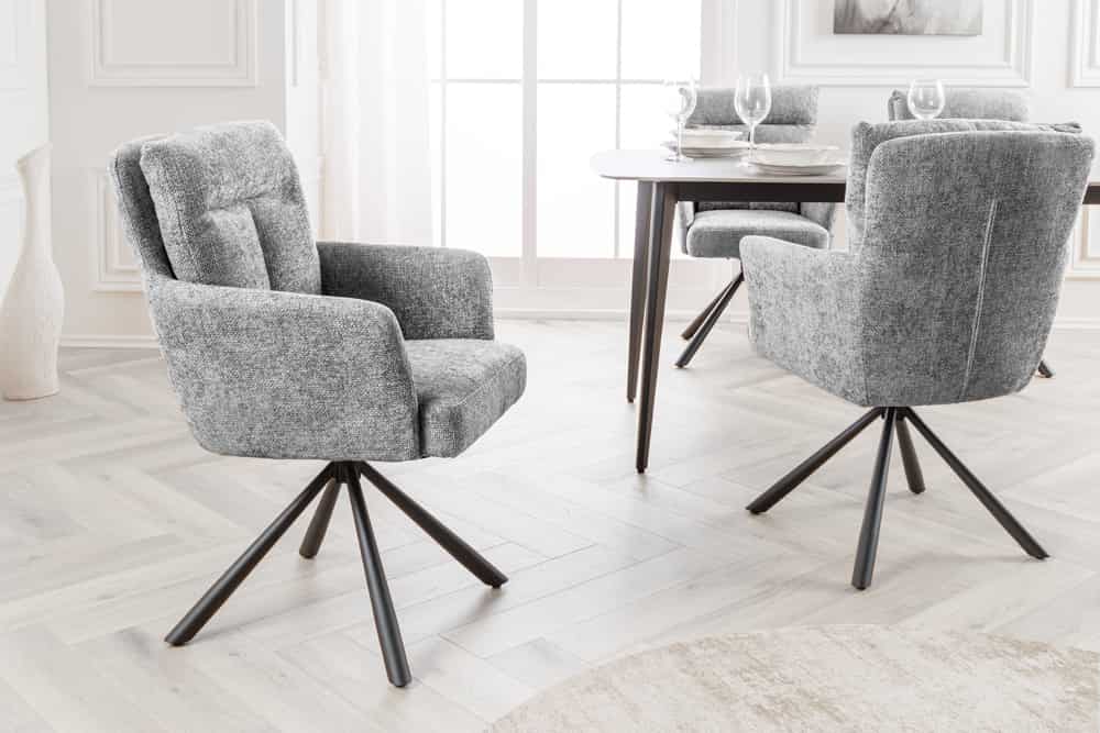 Dann wird Dich der drehbare Stuhl CHARLES in elegantem Grau begeistern! Dieser außergewöhnliche Sessel vereint Komfort, Stil und Funktionalität auf eine Weise, die Dein Herz höher schlagen lässt.