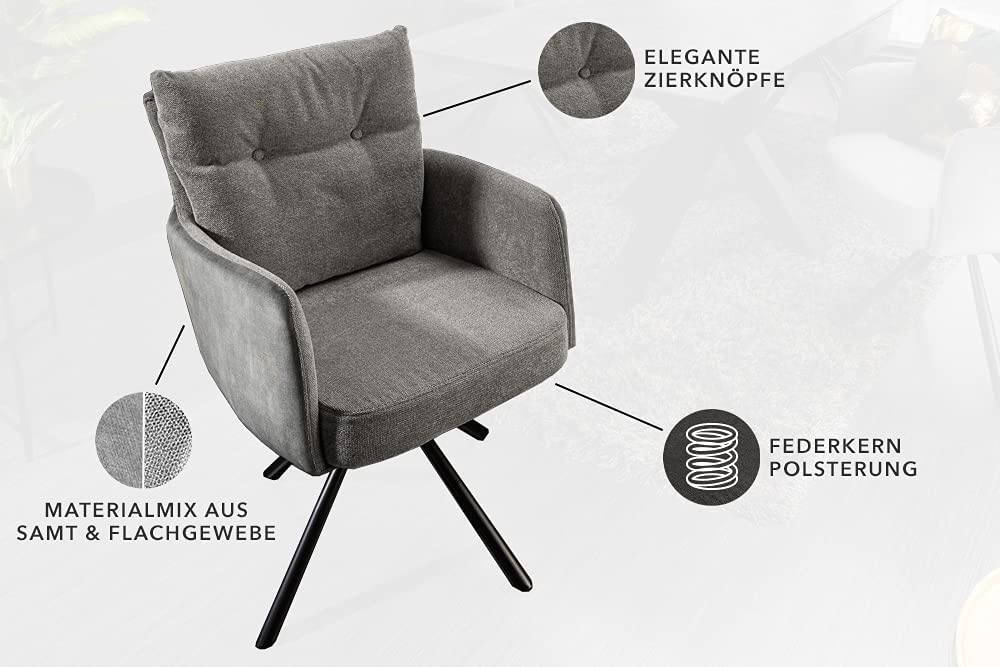 Bequemer Drehstuhl CHARLES II mit Taschenfederkernpolsterung grau