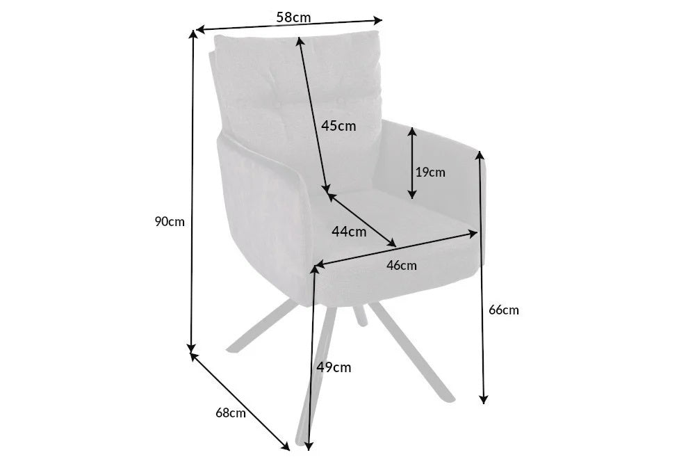 - Maße ca.: 58x90x68cm (BxHxT) - Sitzbreite 46cm - Sitzhöhe 49cm - Sitztiefe 44cm - Höhe Rückenlehne 45cm - Höhe Armlehne 19cm - Abstand Boden/Armlehne 66cm