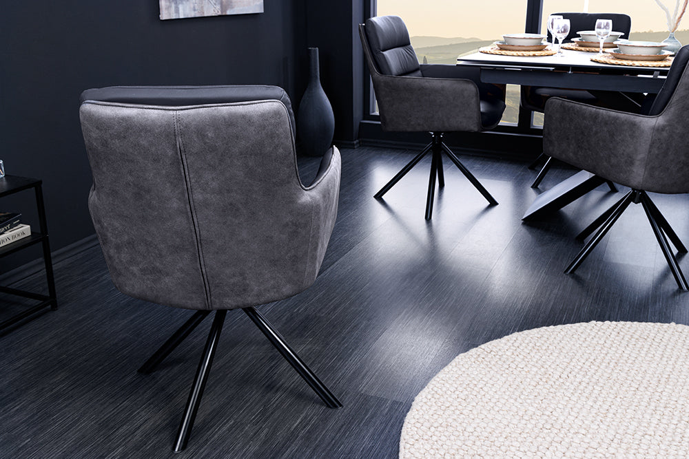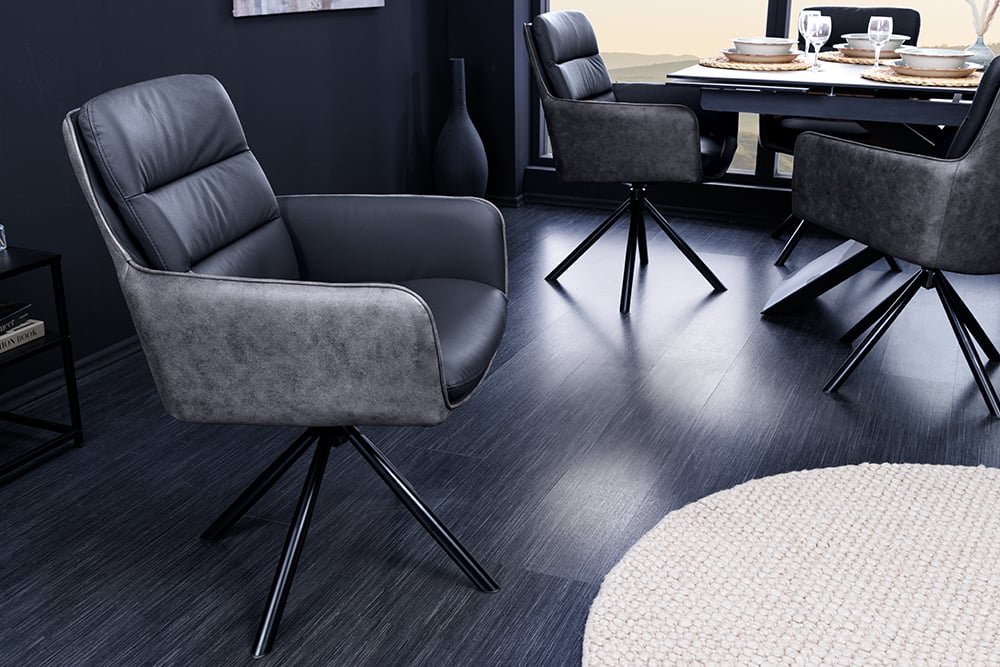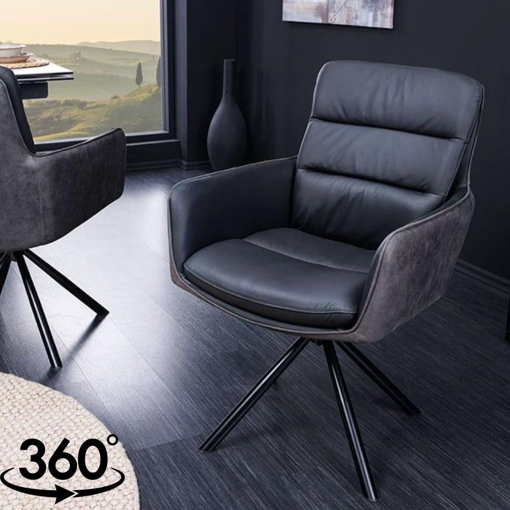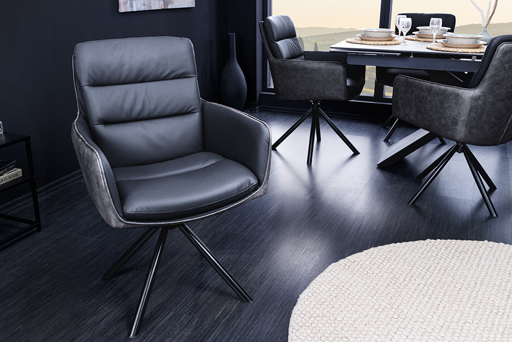 Bequemer Drehstuhl CHARLES III anthrazit Echtleder Mikrofaser