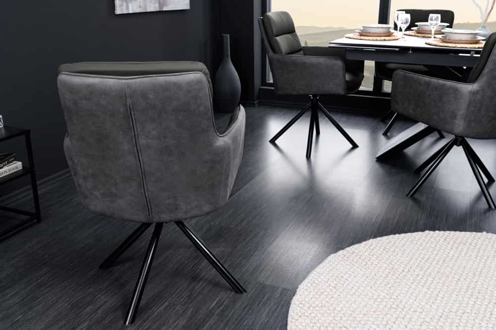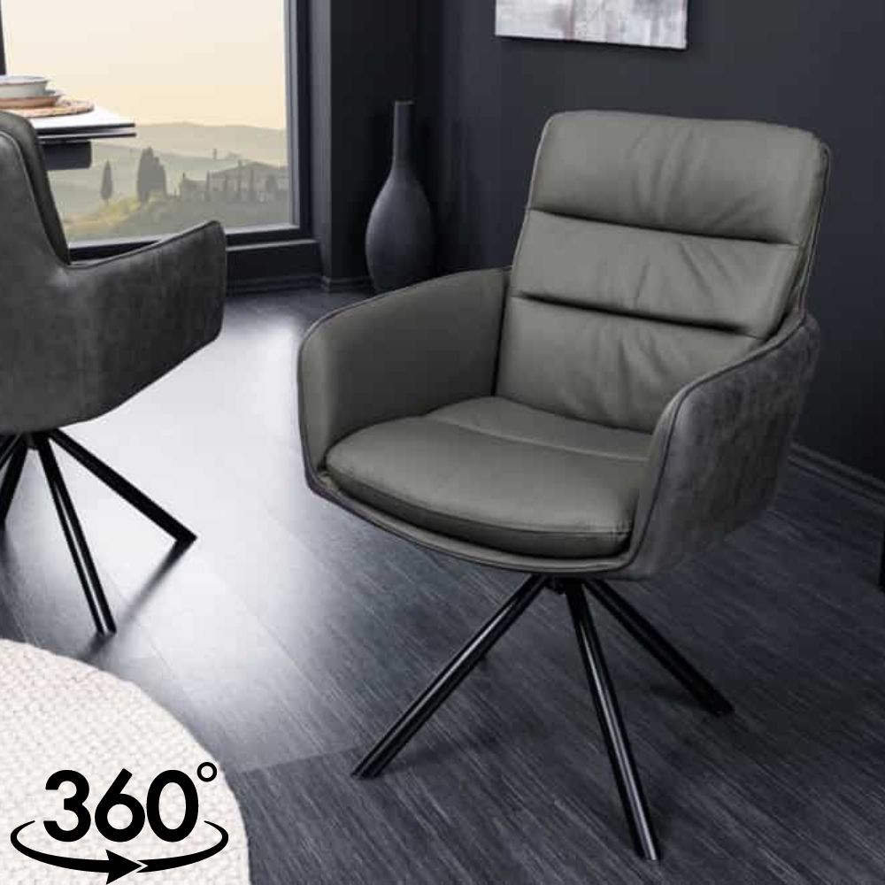 Bequemer Drehstuhl CHARLES III grau Echtleder Mikrofaser