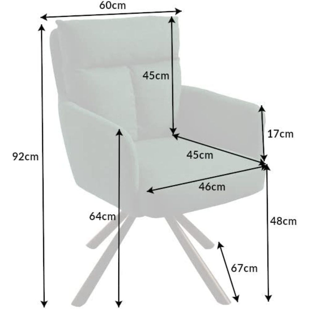 - Maße ca.: 60x93x67cm (BxHxT) - Sitzbreite 46cm - Sitzhöhe 50cm - Sitztiefe 46cm - Höhe Rückenlehne 45cm - Abstand Boden/Armlehne 65cm