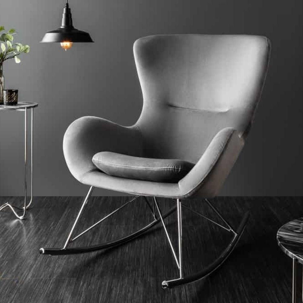 Bequemer Schaukelstuhl HYGGE grau Samt Chrom Sessel