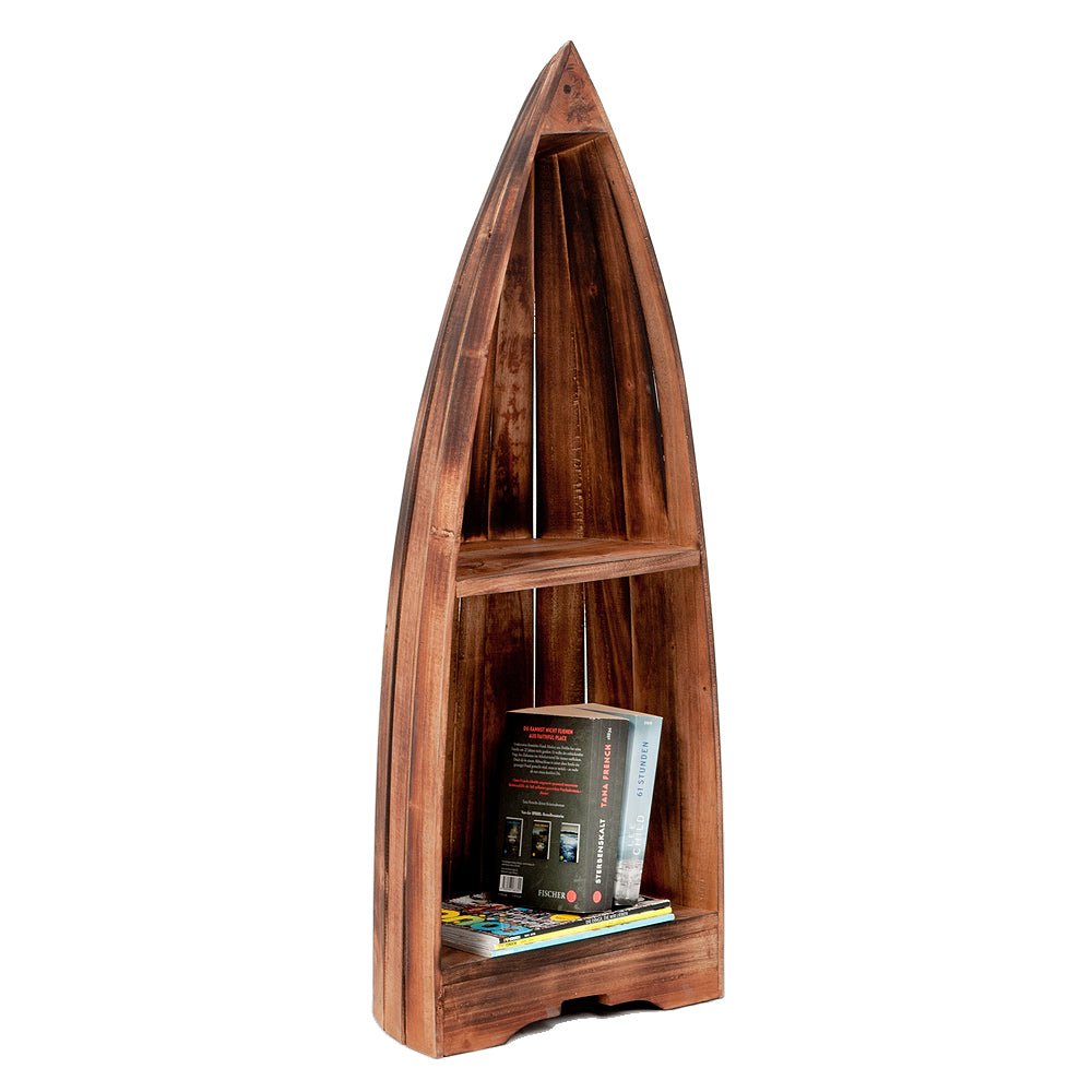 Bootsregal BALI. Dieses aussergewöhnliche Regal in Form eines traditionellen Fischerbootes wurde in Handarbeit aus Mahagoni gefertigt. Durch die individuelle Farbgebung und kleine Unebenheiten wird jedes Regal zu einem Unikat. Das Bootsregal bietet viele Möglichkeiten zum Dekorieren und Aufbewahren von z.B. Küchenutensilien, Büchern, Deko-Artikeln oder Weinflaschen.
