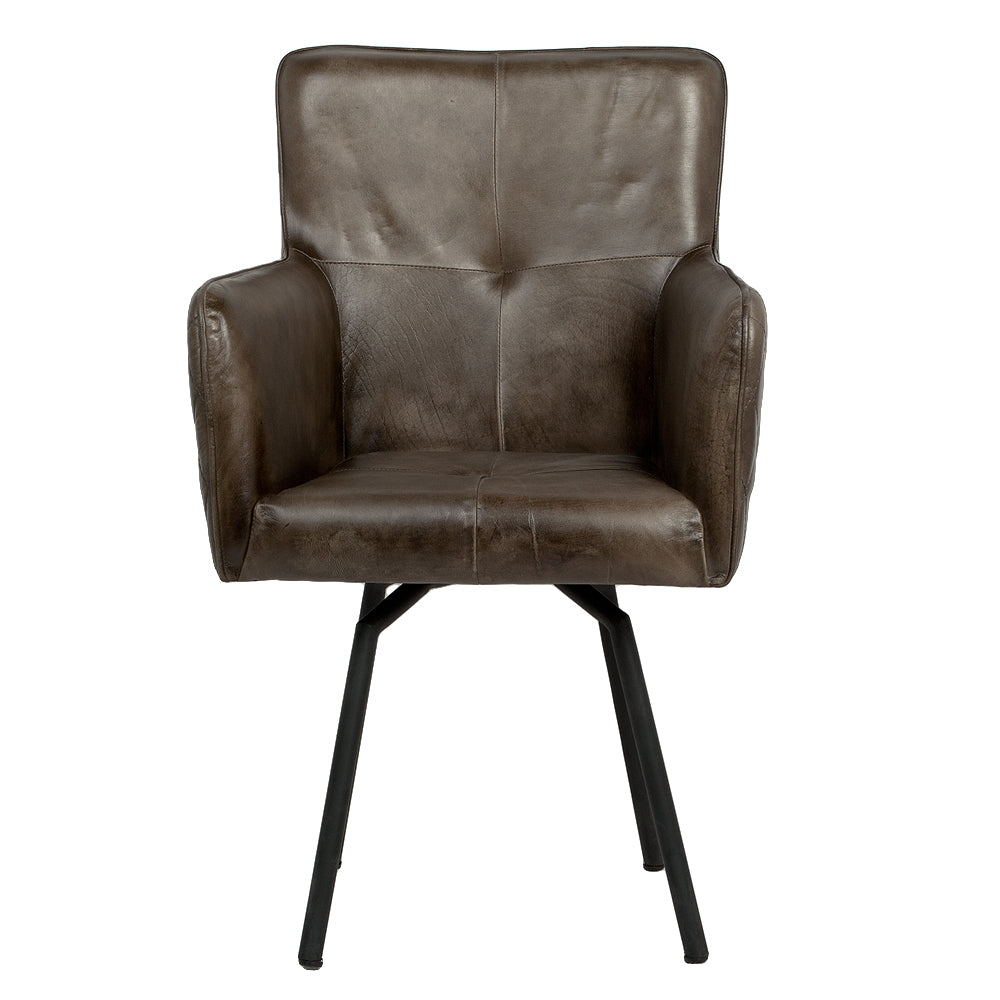 Der Armlehnstuhl SARA sorgt dank des bequemen Lederbezugs für einen angenehmen Sitzkomfort. Robuste Metallbeine (Schwarz) bieten einen festen Stand.