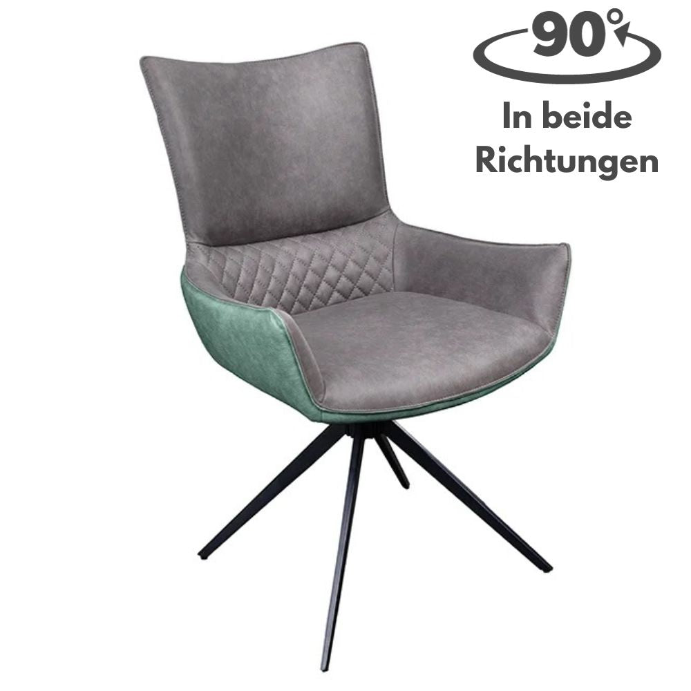 Der Stuhl ist mit hochwertigem Stoff bezogen, der strapazierfähig und langlebig ist. Das Grau-Grüne Farbschema verleiht dem Stuhl eine zeitlose und moderne Optik, die zu verschiedenen Einrichtungsstilen passt. Die Armlehnen bieten zusätzlichen Komfort und unterstützen eine ergonomische Sitzhaltung.